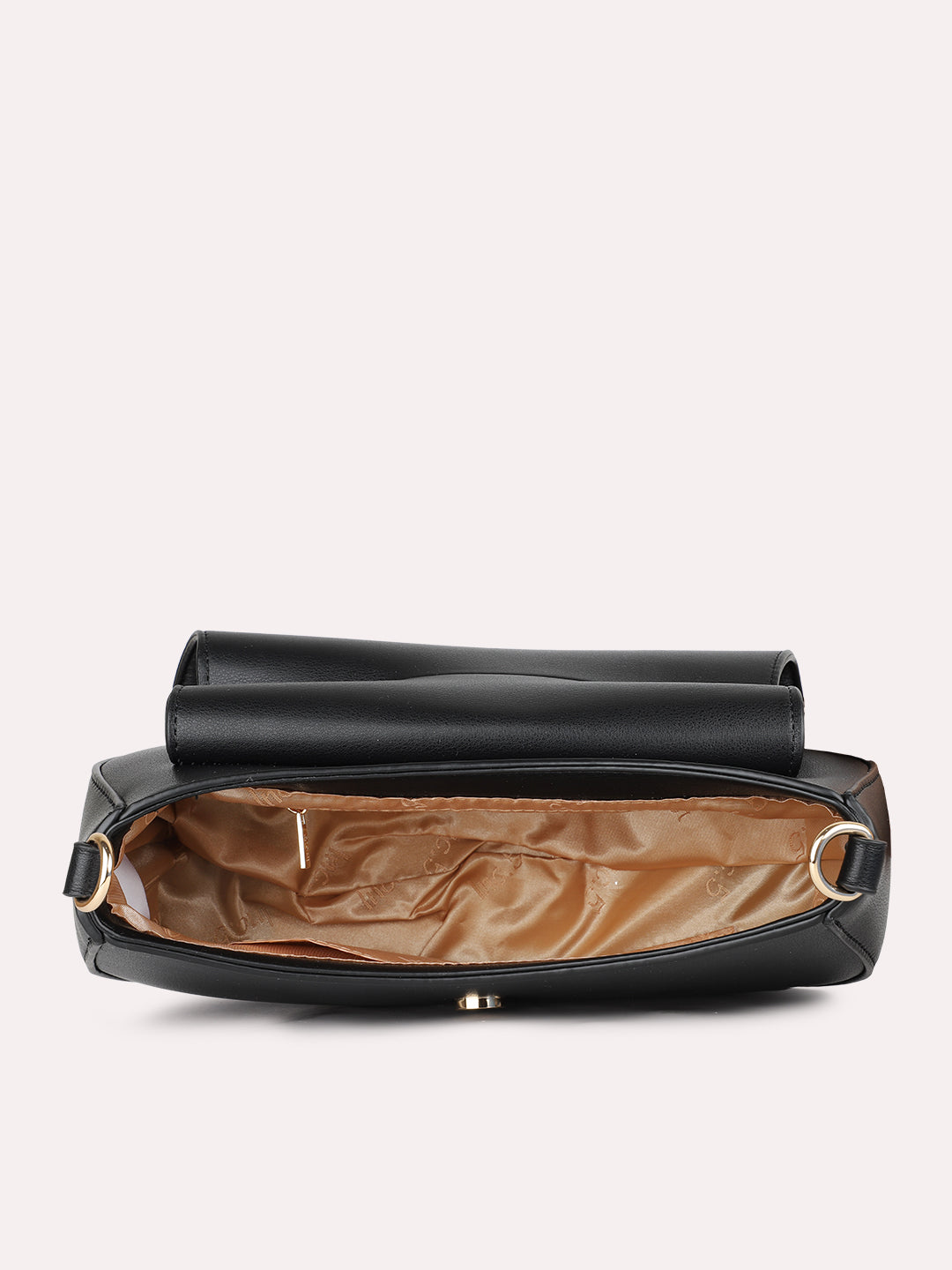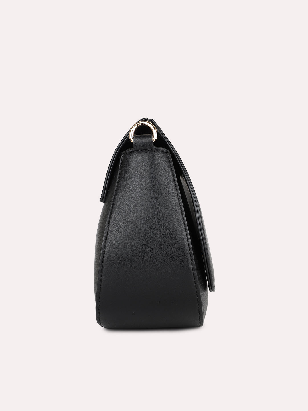Product description:-Make a bold statement at any party with this black solid handbag. Featuring a secure magnet lock, it offers both style and practicality. |