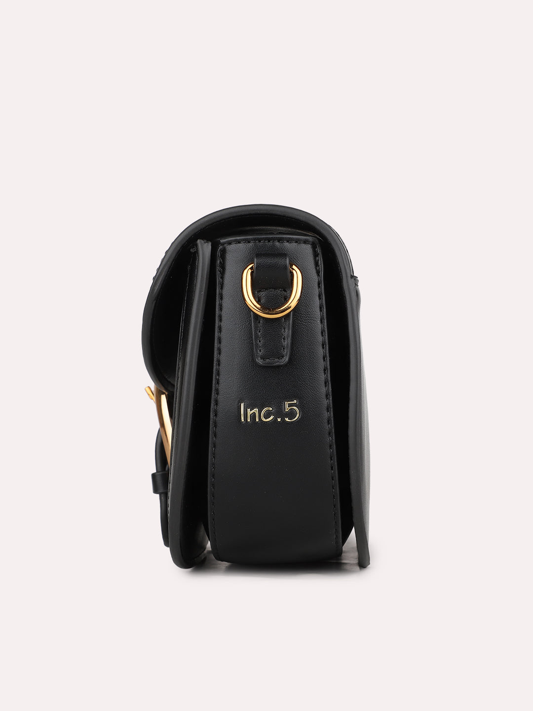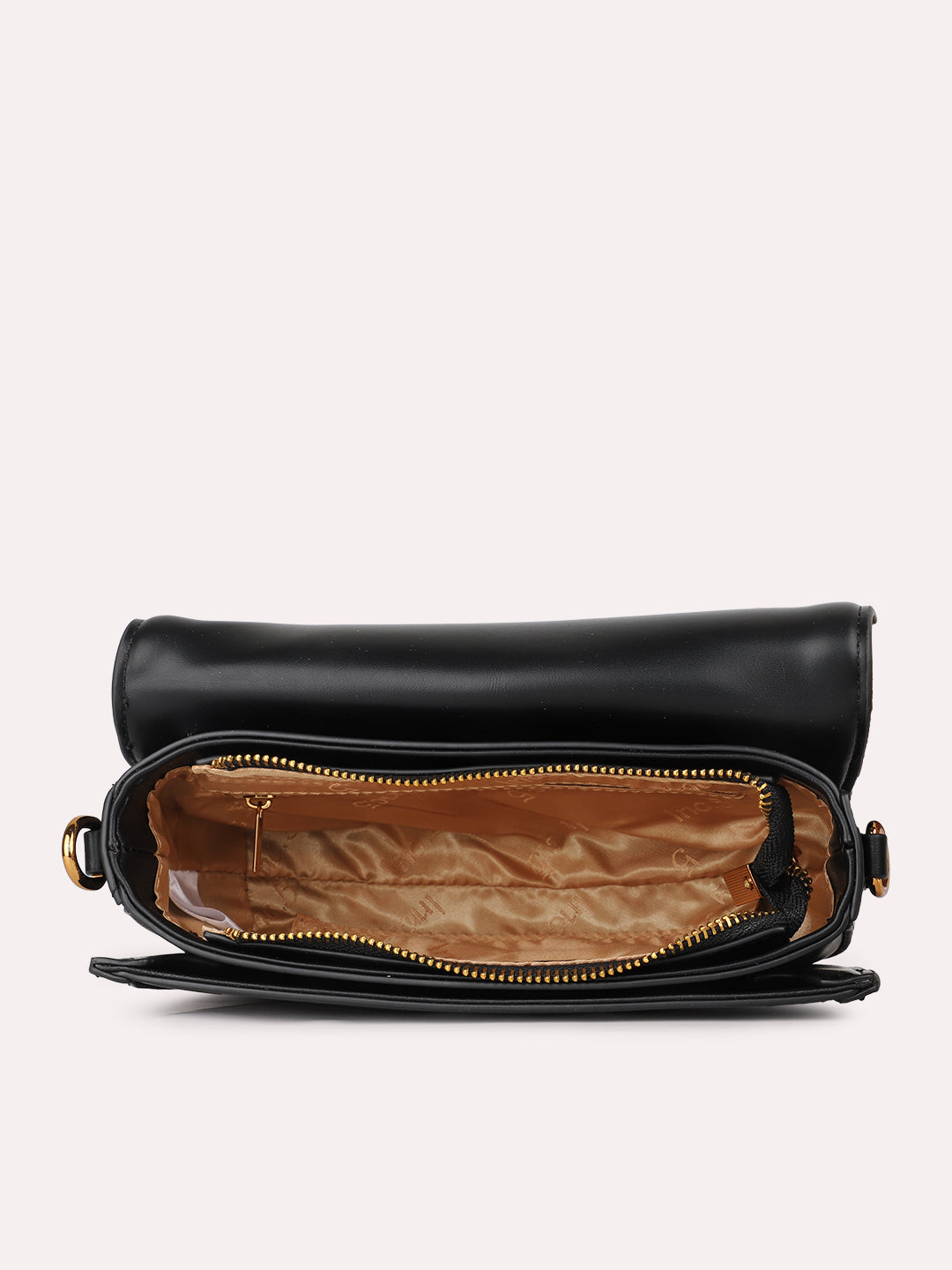 Womens Black Party Solid Pattern Sling Bag With Lock