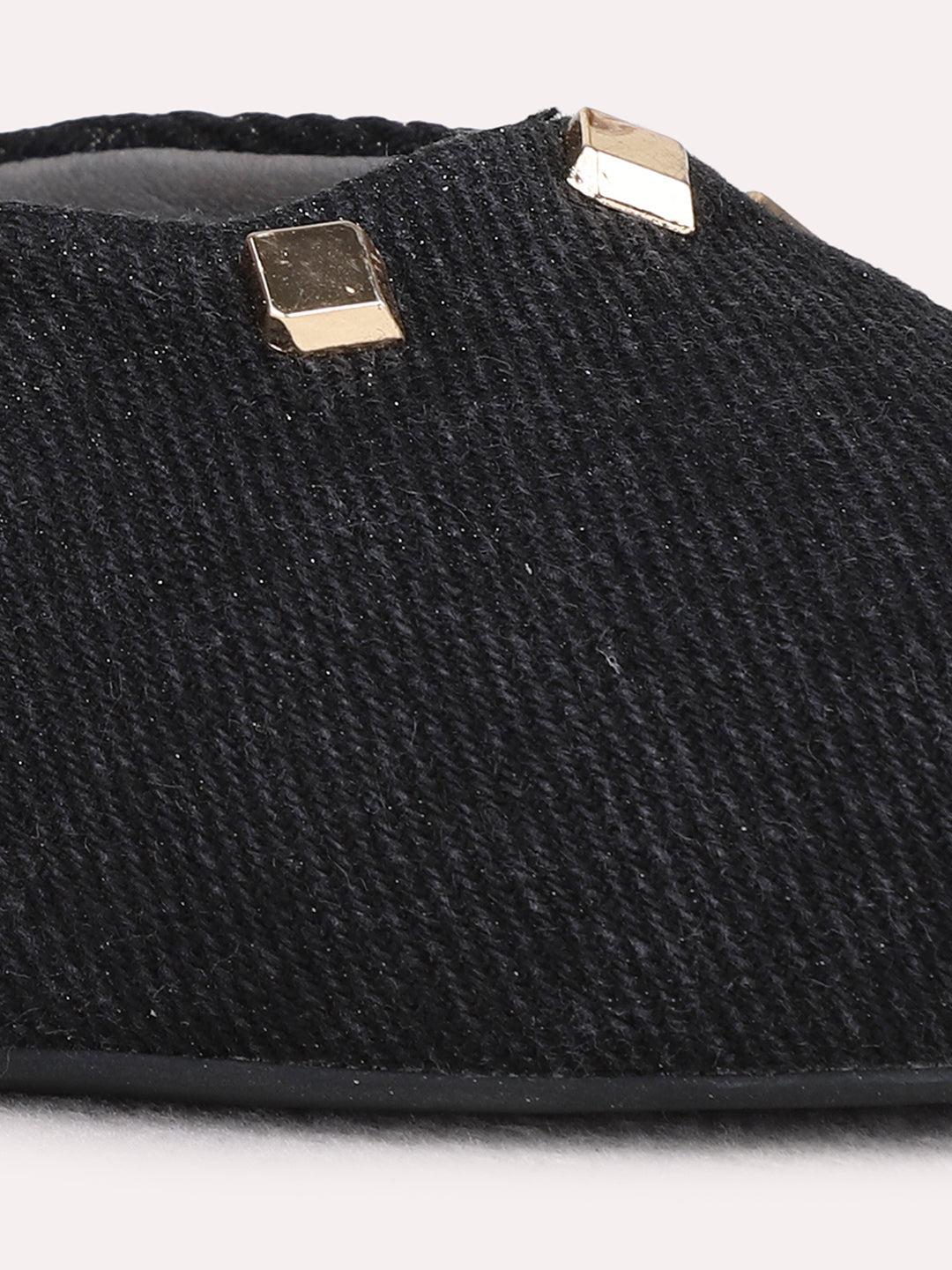 Womens Black Party Wear Embellished Pointed Toe Kitten Heel Sandals
