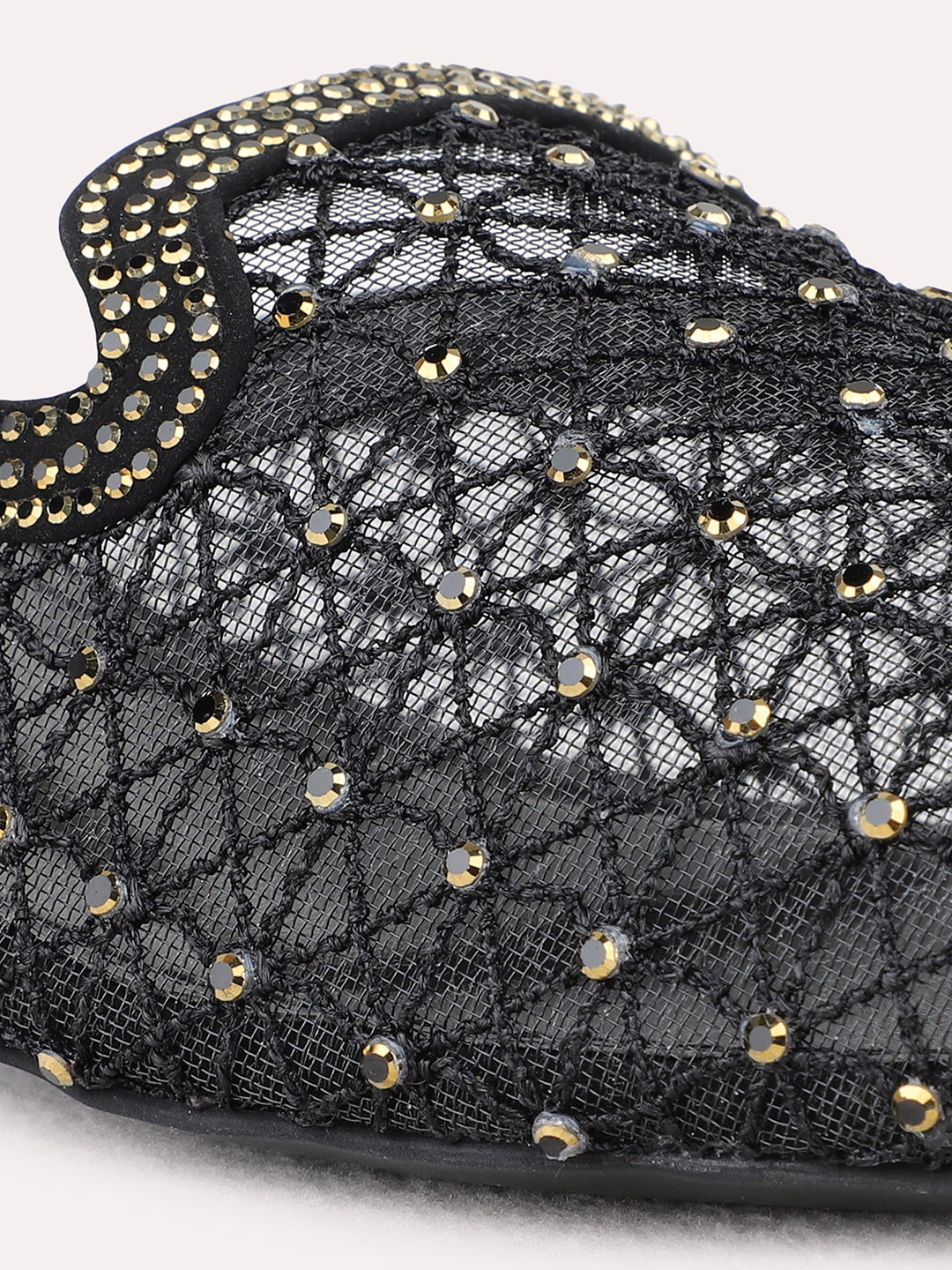 Product description:-Elevate your evening attire with these black one-toe flats. The sleek mule silhouette provides a refined look that transitions easily from dinner to the dance floor with ultimate comfort. |