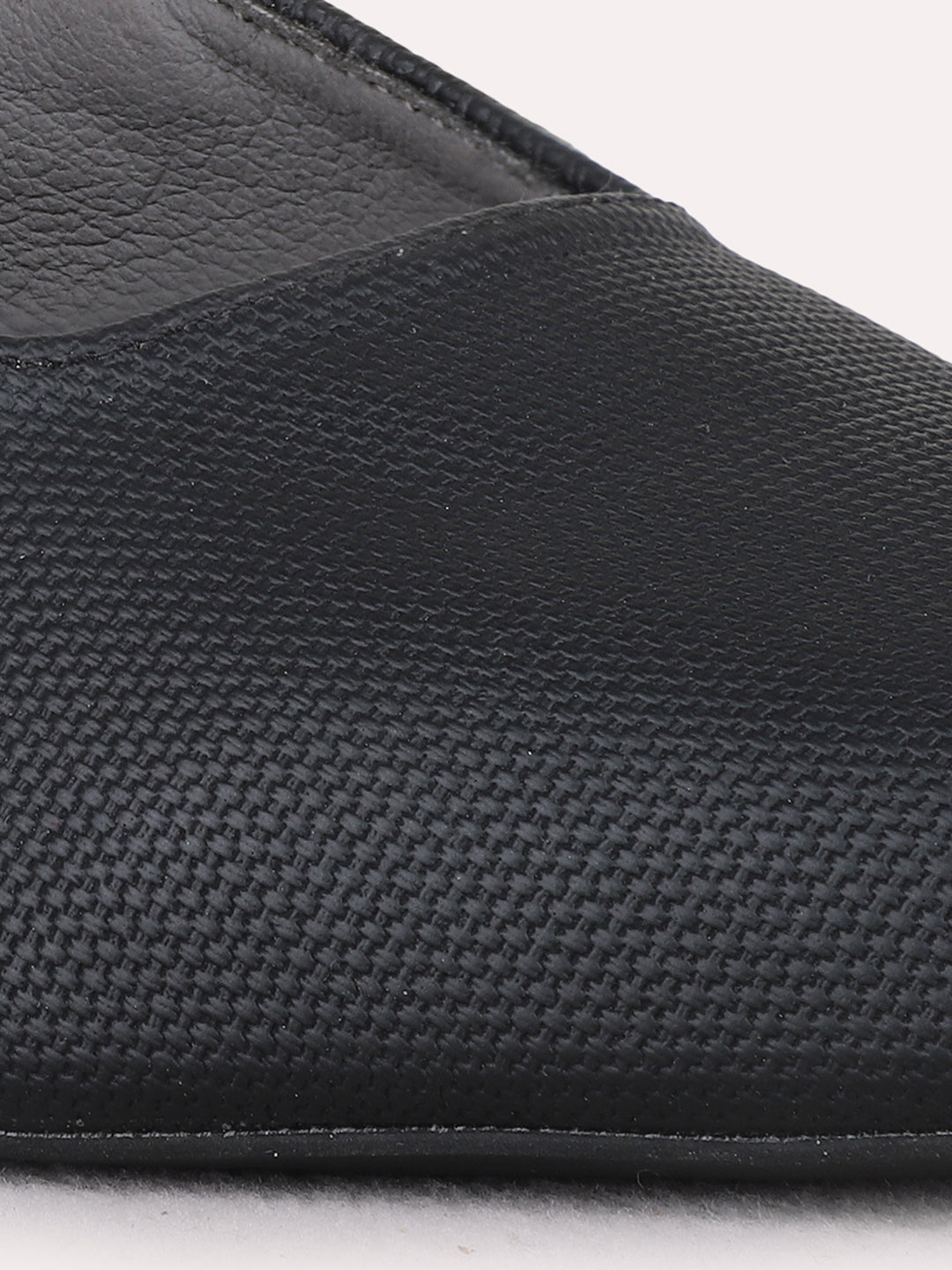 Womens Black Party Wear Solid Pointed Toe Kitten Heel Mules