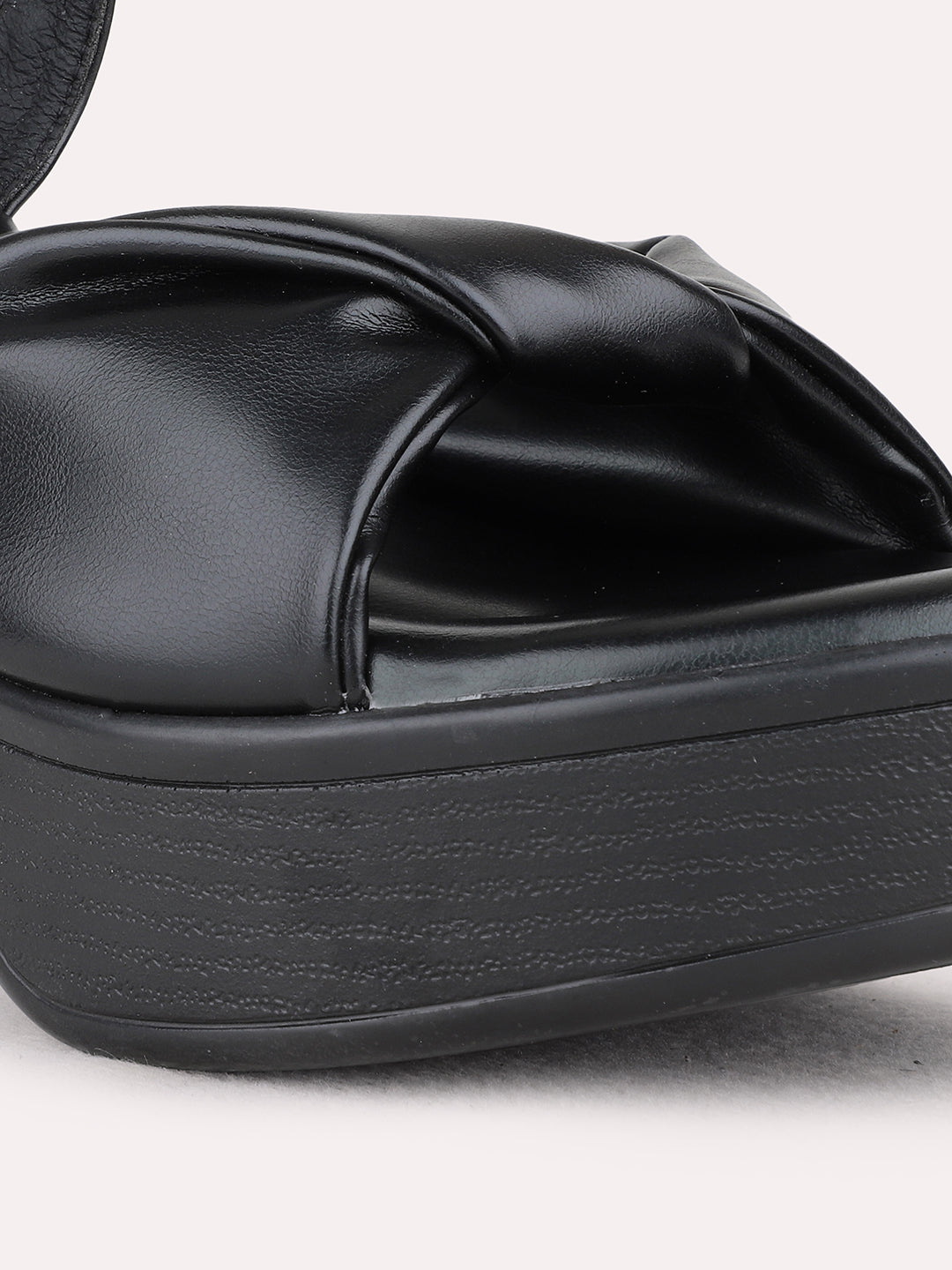 Womens Black Party Wear Solid Round Toe Platform Heel Sandals