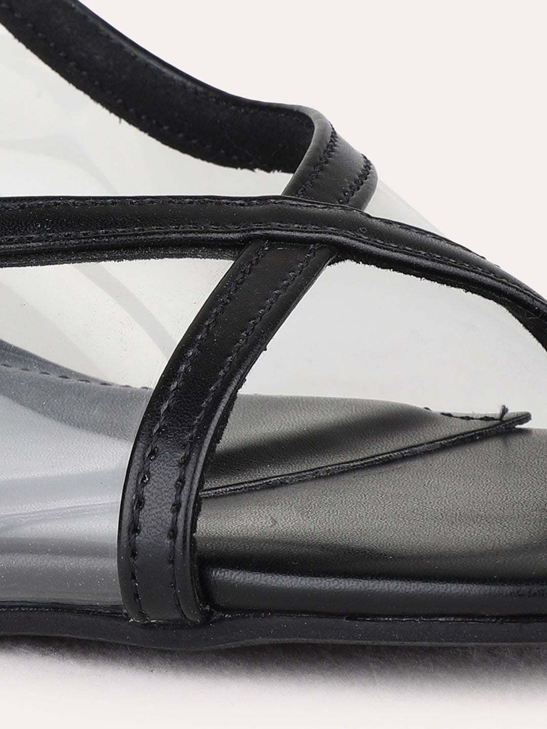 Womens Black Party Wear Solid Square Toe Kitten Heel Sandals