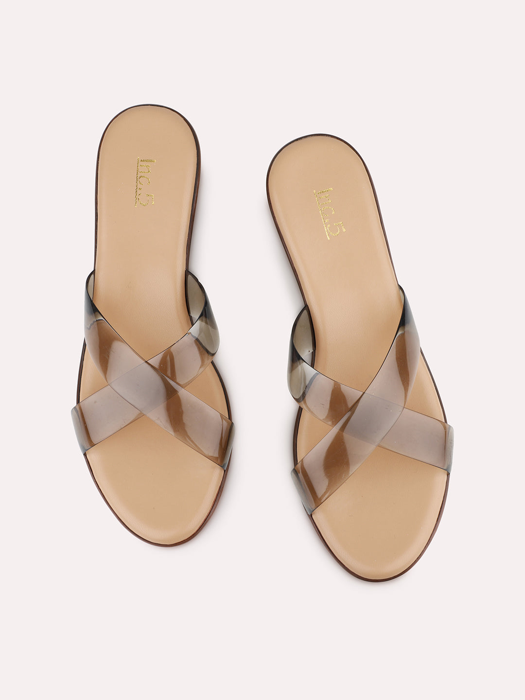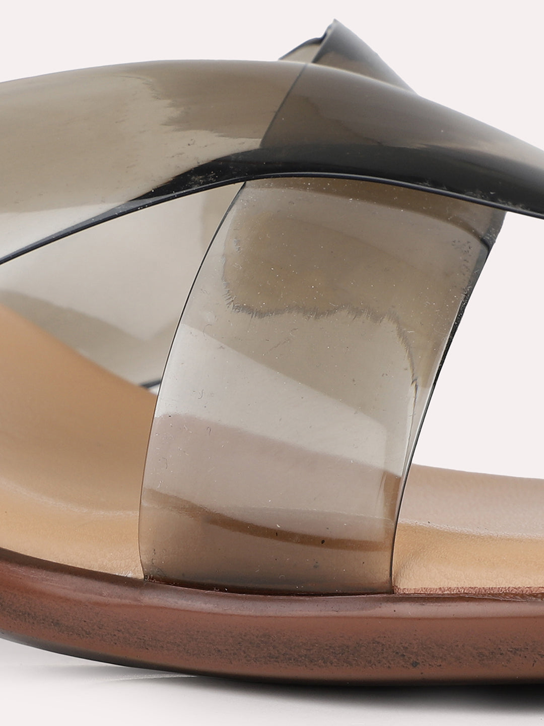 Product description:-Make a bold style statement with these black transparent block heel sandals. Round toe design and stable heel offer modern party-ready elegance. |