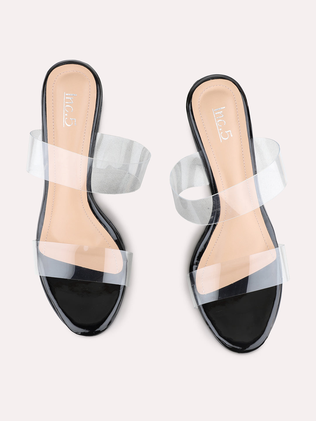 Womens Black Party Wear Transparent Round Toe Stiletto Heel Sandals