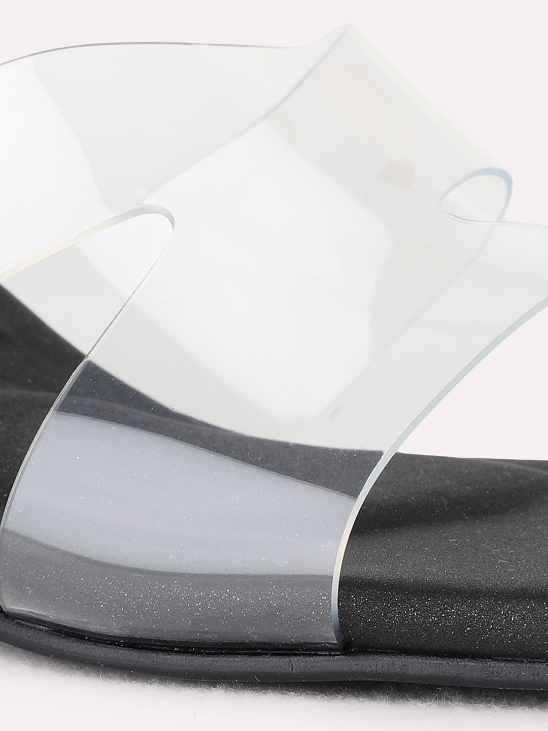 Product description:-Trendy black block heel sandals with transparent straps and square toe finish. Stylish footwear crafted for parties and fashionable events. |