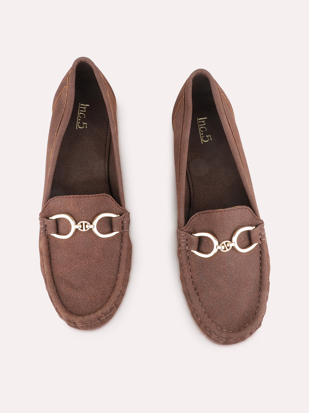 Product description:-Classic brown loafers with solid finish and round toe. Designed for casual wear, offering comfort and timeless appeal for daily styling. |
