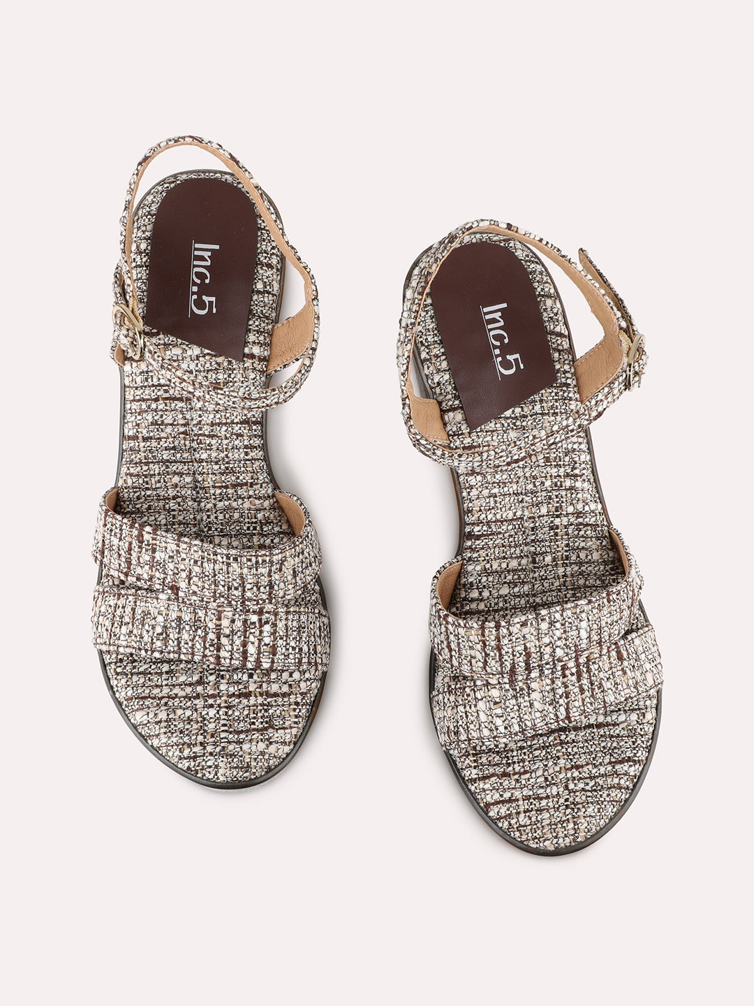 Womens Brown Party Wear Printed Round Toe Platform Heel Sandals
