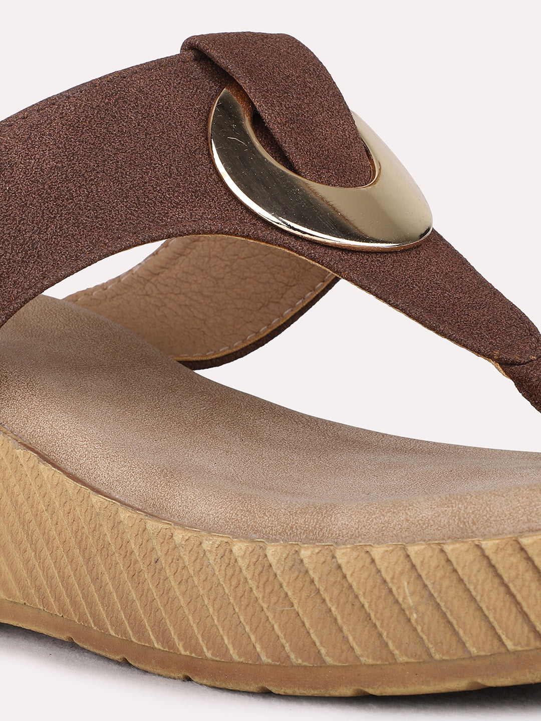 Womens Brown Party Wear Solid Round Toe Wedge Heel Sandals
