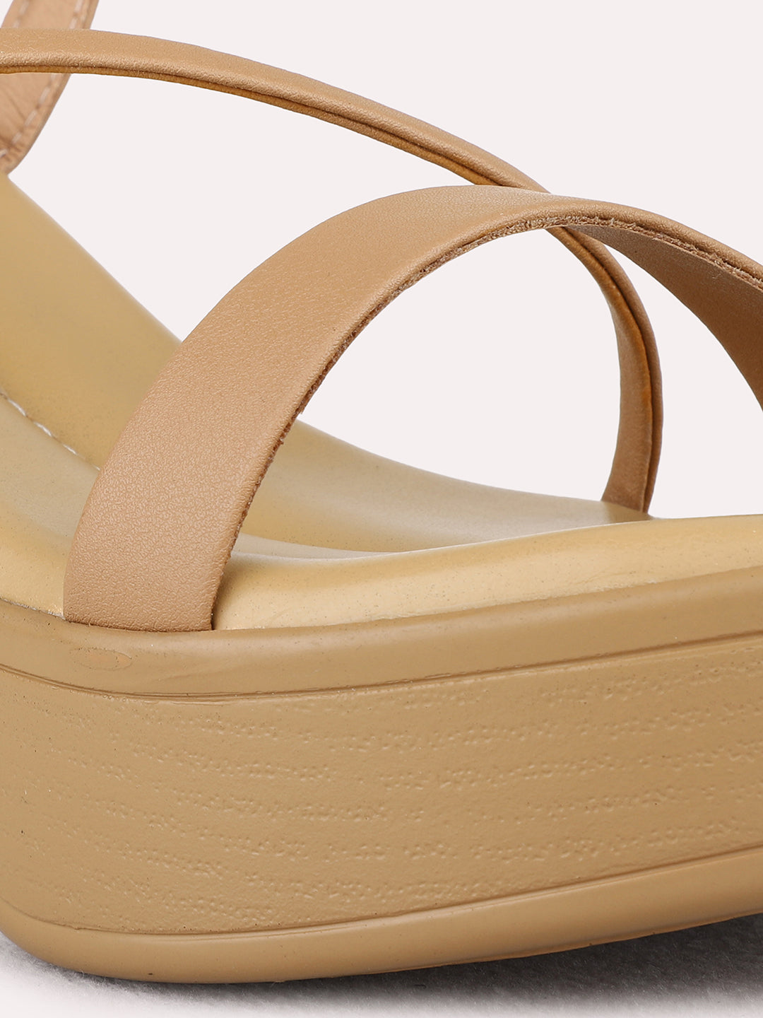 Womens Brown Party Wear Striped Round Toe Platform Heel Sandals