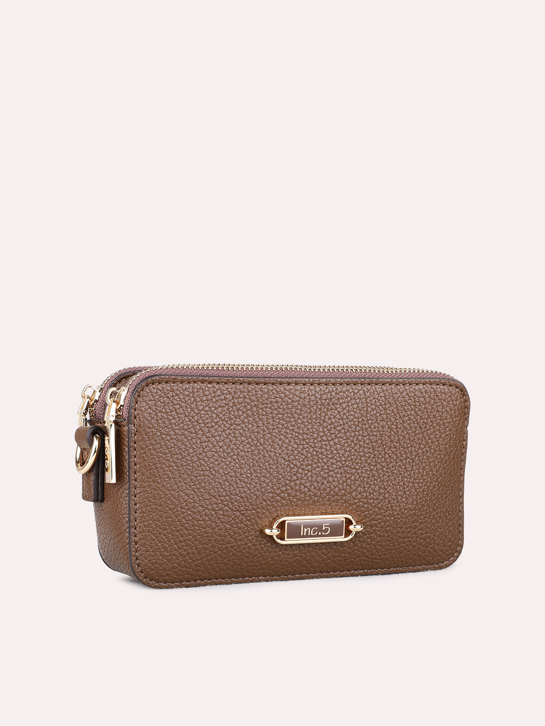 Womens Brown Sling Bag With Zipper Lock For Party Use