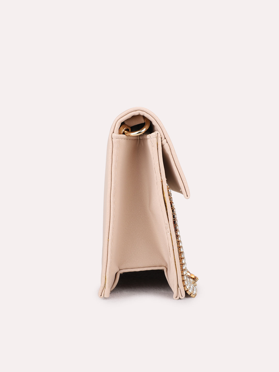 Product description:-The quintessential champagne party clutch. This bag features a brilliant embellished pattern and a chic lock mechanism that ensures your belongings are safe. It's the ideal shimmering accessory to complement your look at weddings and upscale parties. |