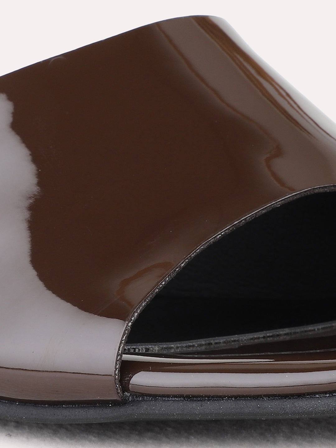 Womens Coffee Brown Party Wear Solid Square Toe Block Heel Sandals