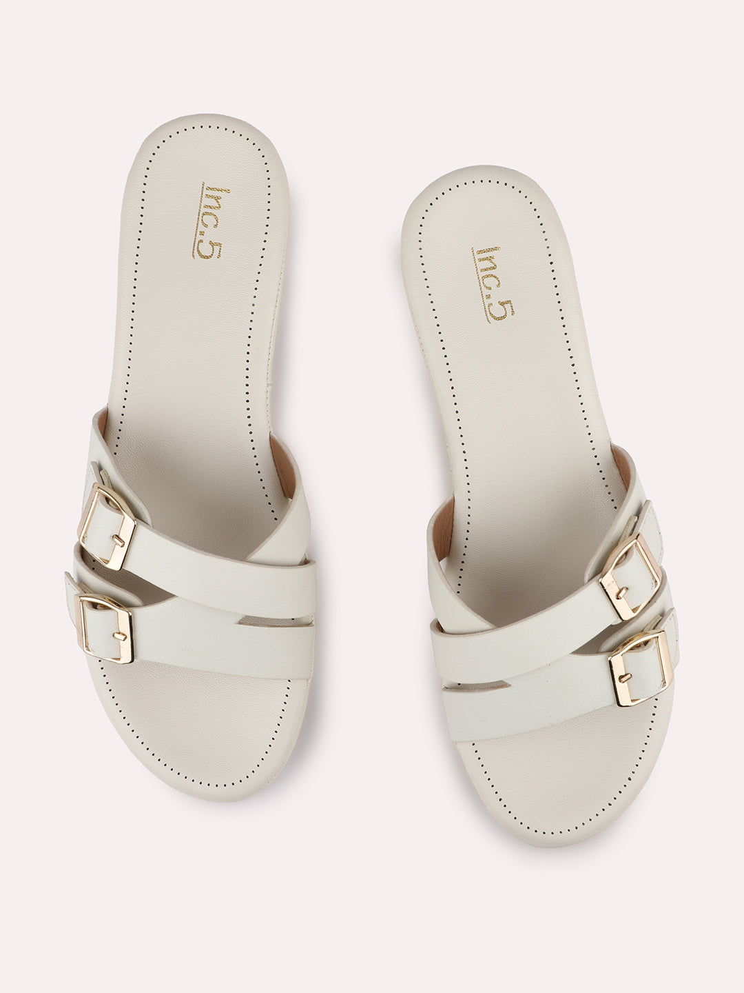 Product description:- Step into comfort with these cream double strap flats. Ideal for casual outings, they blend style with everyday practicality. |