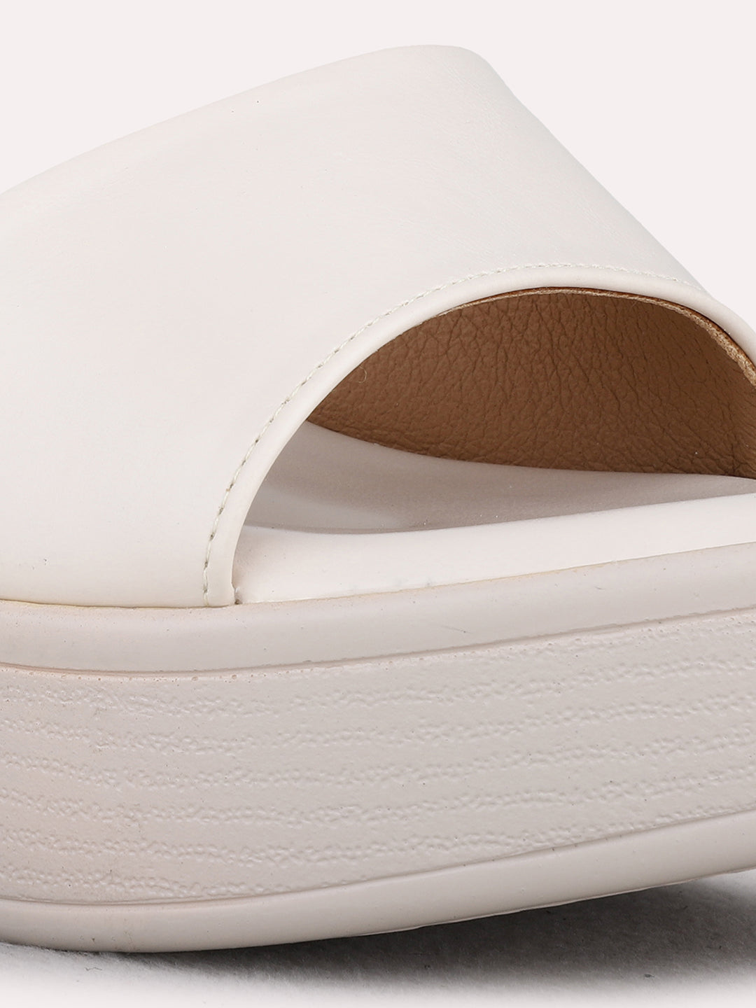 Womens Cream Party Wear Solid Round Toe Platform Heel Sandals