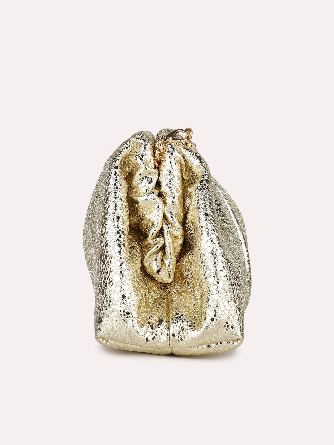 Product description:-Shine at any party with this gold embellished clutch. The twist lock keeps your belongings secure while its glamorous design adds a luxurious touch. |