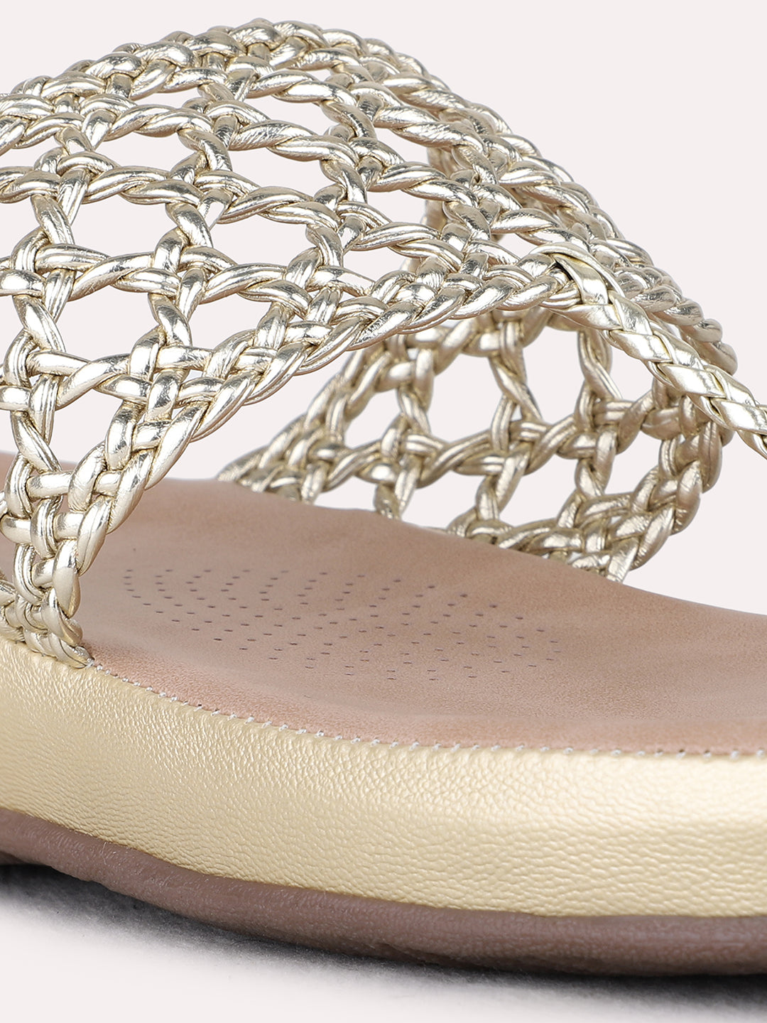 Womens Golden Casual Printed T-Strap Flat Sandals