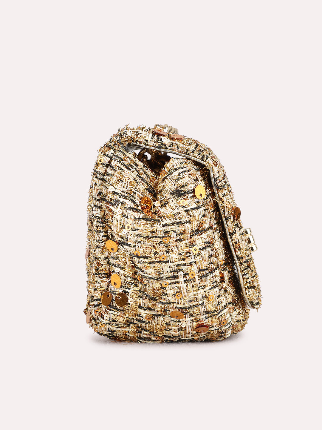 Product description:-Make a dazzling statement with this luxurious golden clutch. Featuring exquisite, detailed embellishment and a secure twist lock closure, this structured bag is the perfect accessory for any party or formal event. |