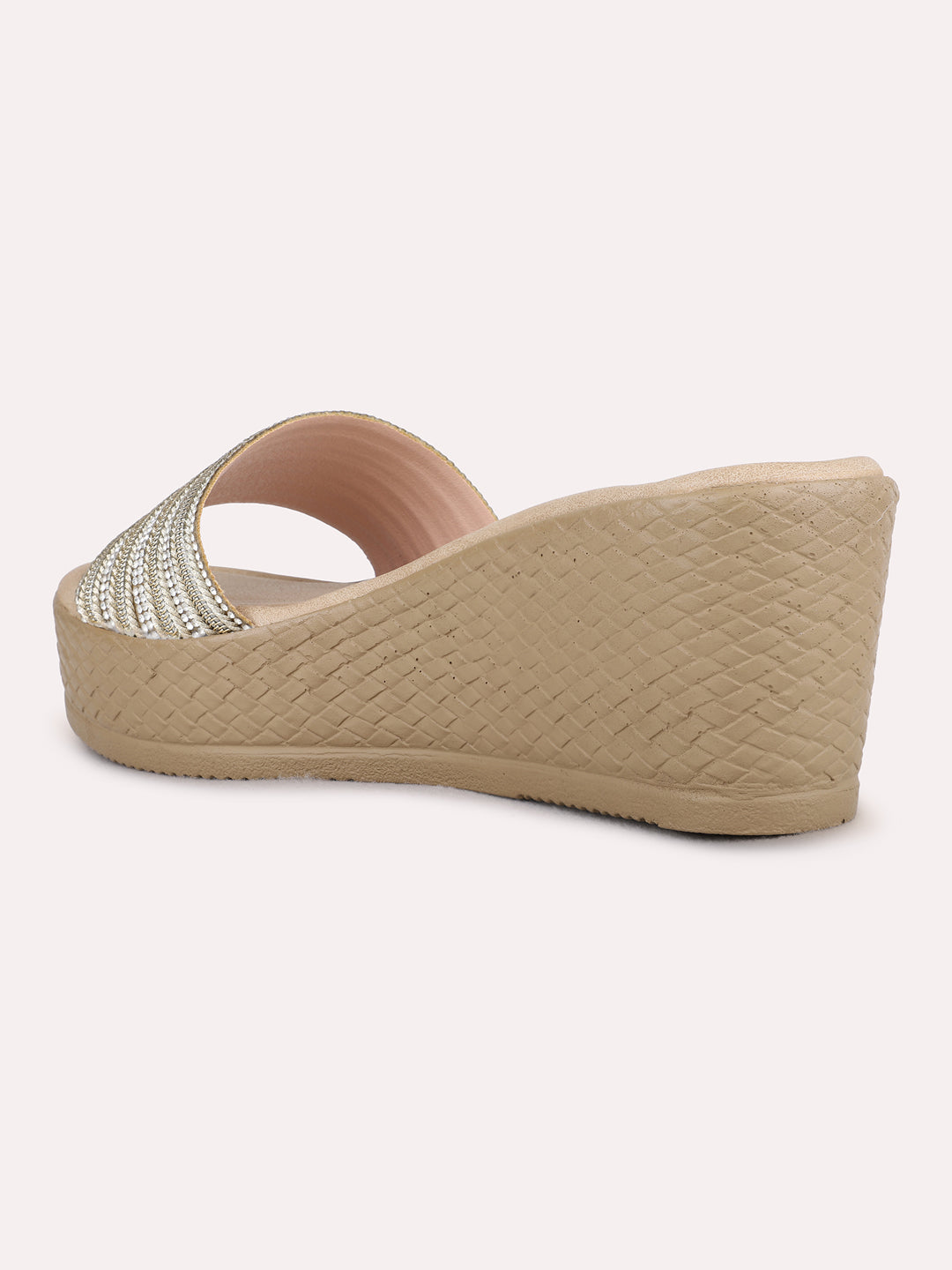 Womens Golden Ethnic Embellished Wedges Heels