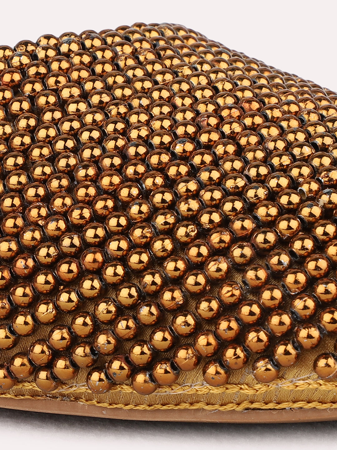 Womens Golden Party Wear Embellished Round Toe Block Heel Mules