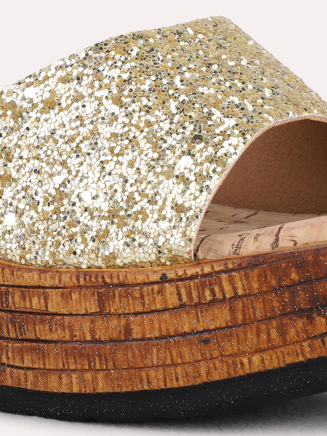 Womens Golden Party Wear Embellished Wedge Heel Sandals