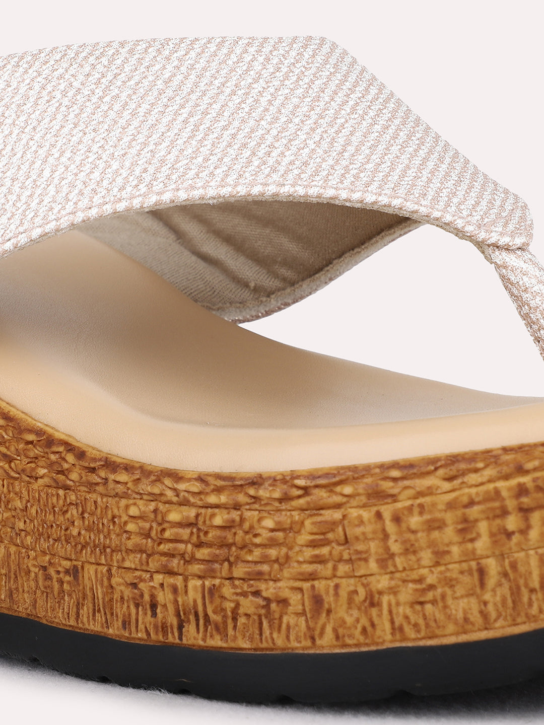 Womens Golden Party Wear Solid Pattern Wedges Sandals