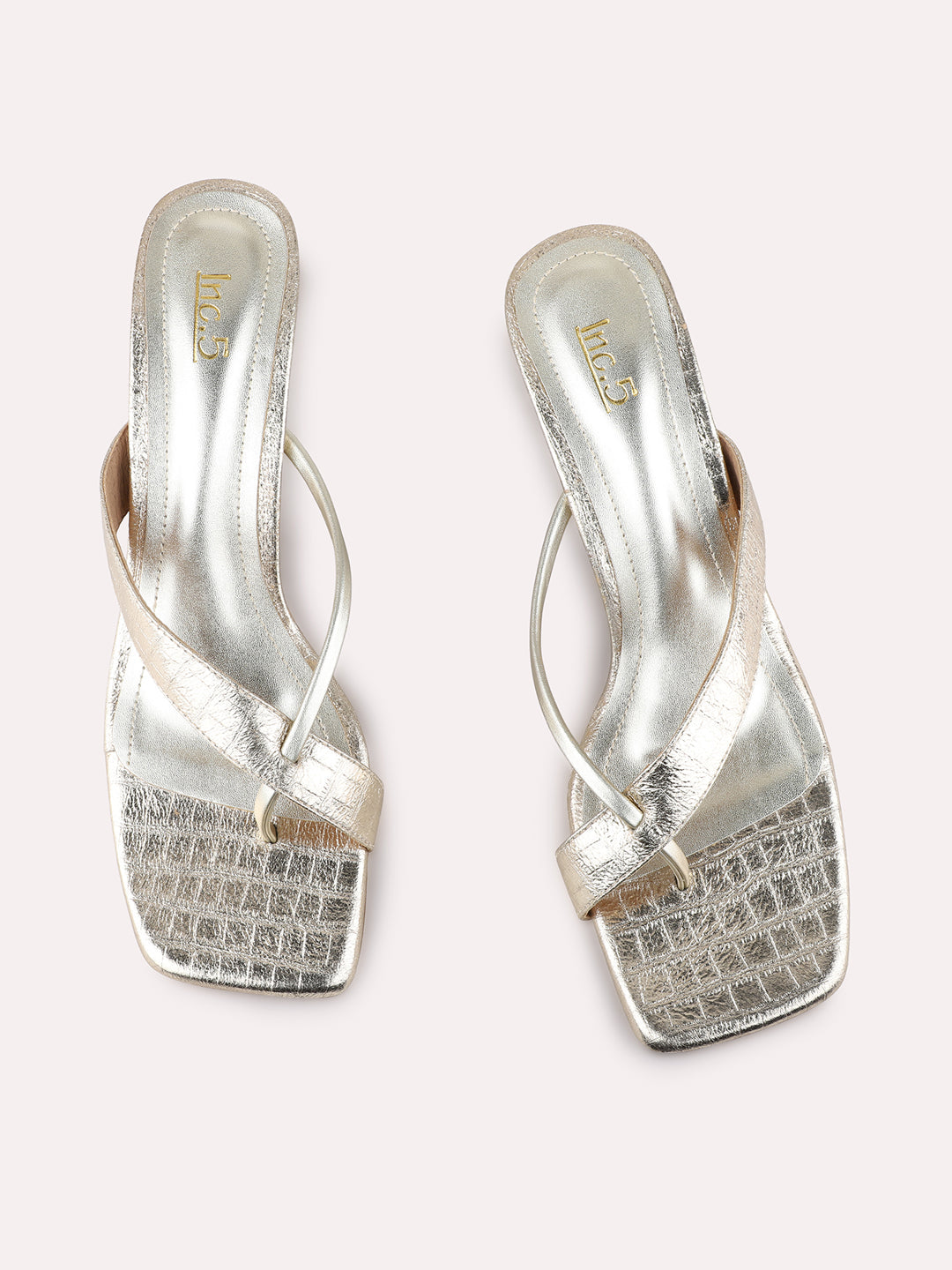 Womens Golden Party Wear Solid Round Toe Kitten Heel Sandals