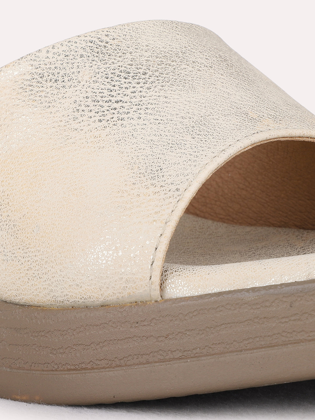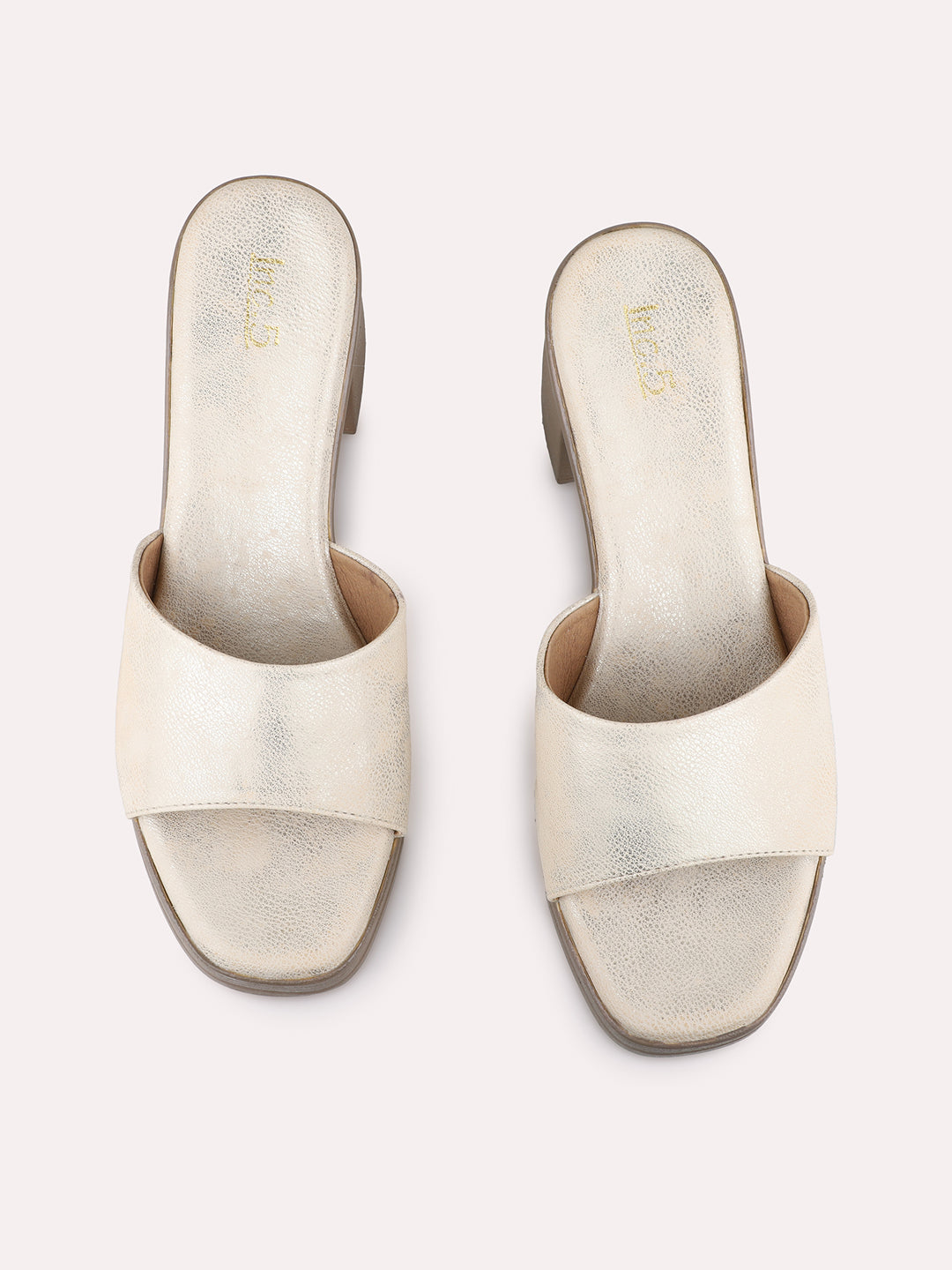 Womens Golden Party Wear Solid Round Toe Platform Heel Sandals