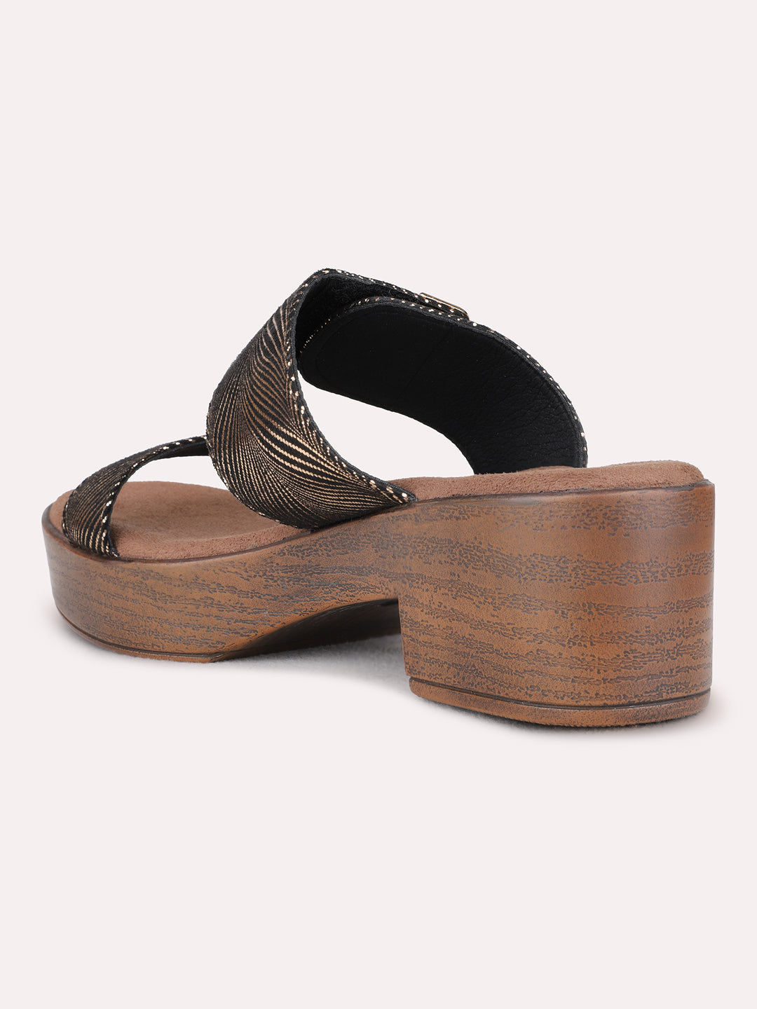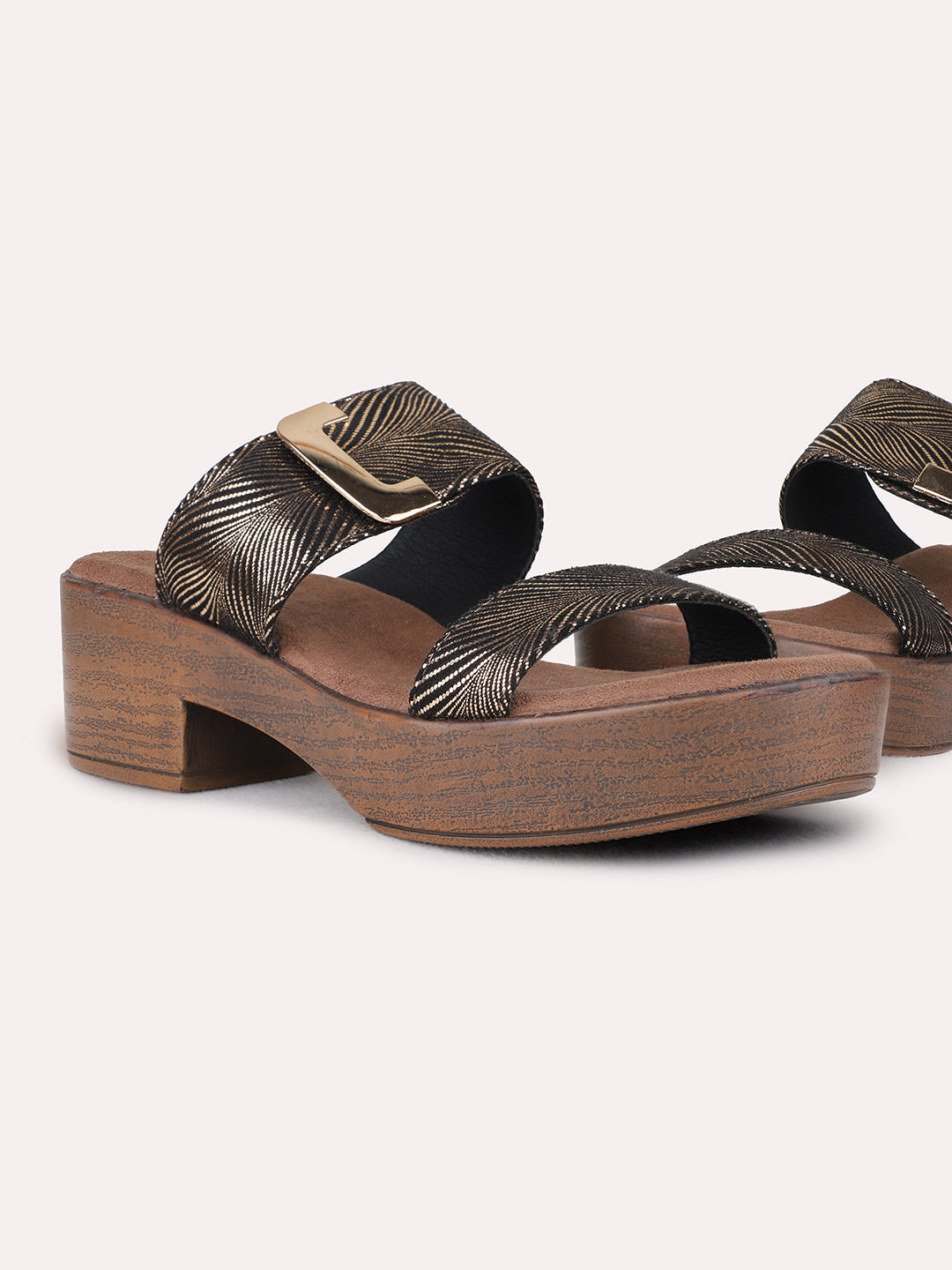 Womens Golden Party Wear Solid Round Toe Platform Heel Sandals