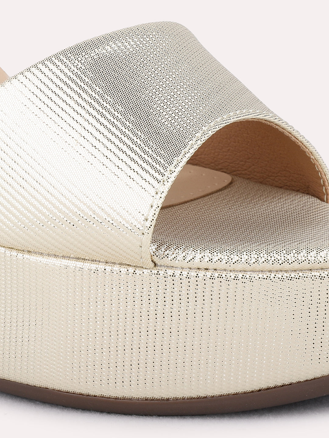 Womens Golden Party Wear Solid Round Toe Platform Heel Sandals