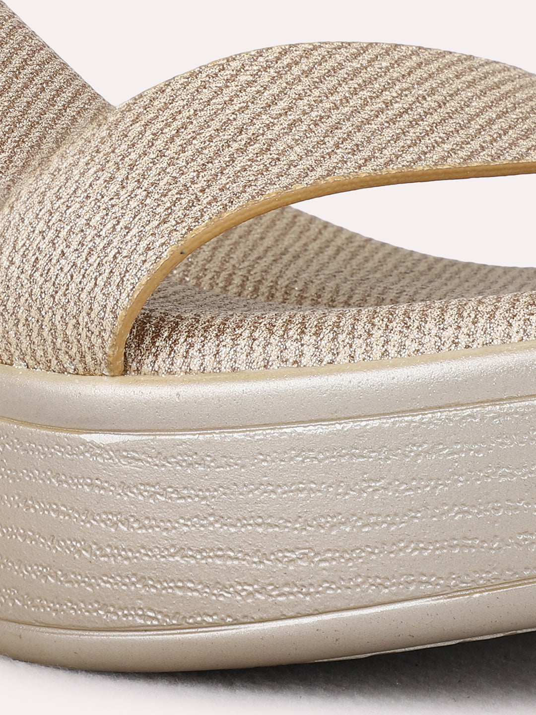 Womens Golden Party Wear Solid Round Toe Platform Heel Sandals