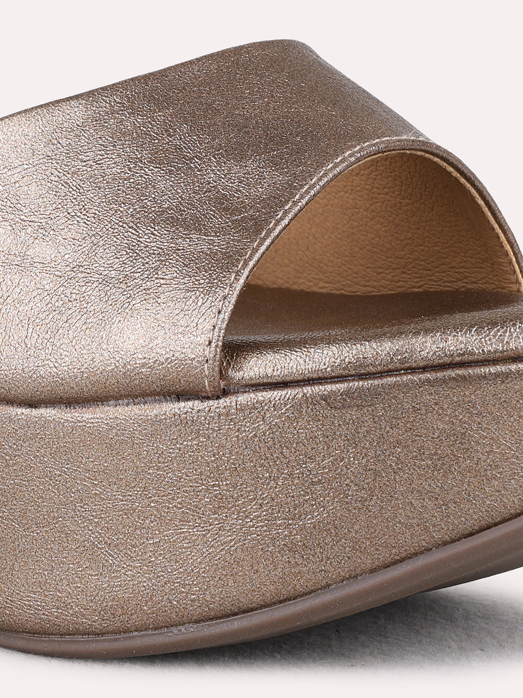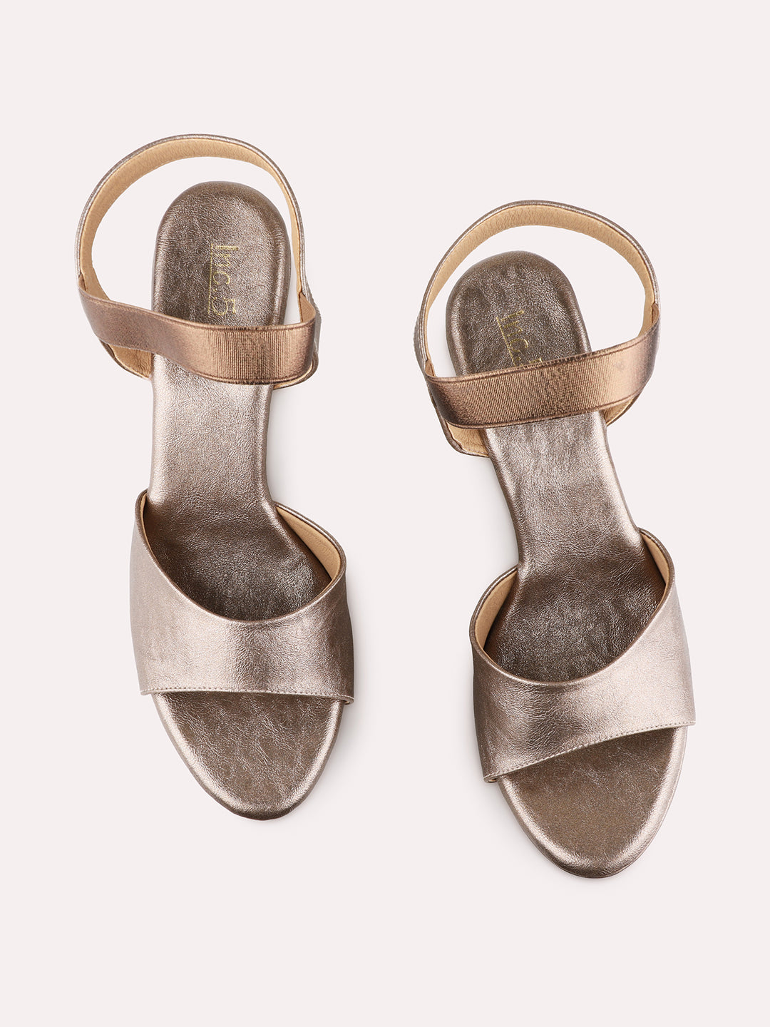 Womens Golden Party Wear Solid Round Toe Stiletto Heel Sandals