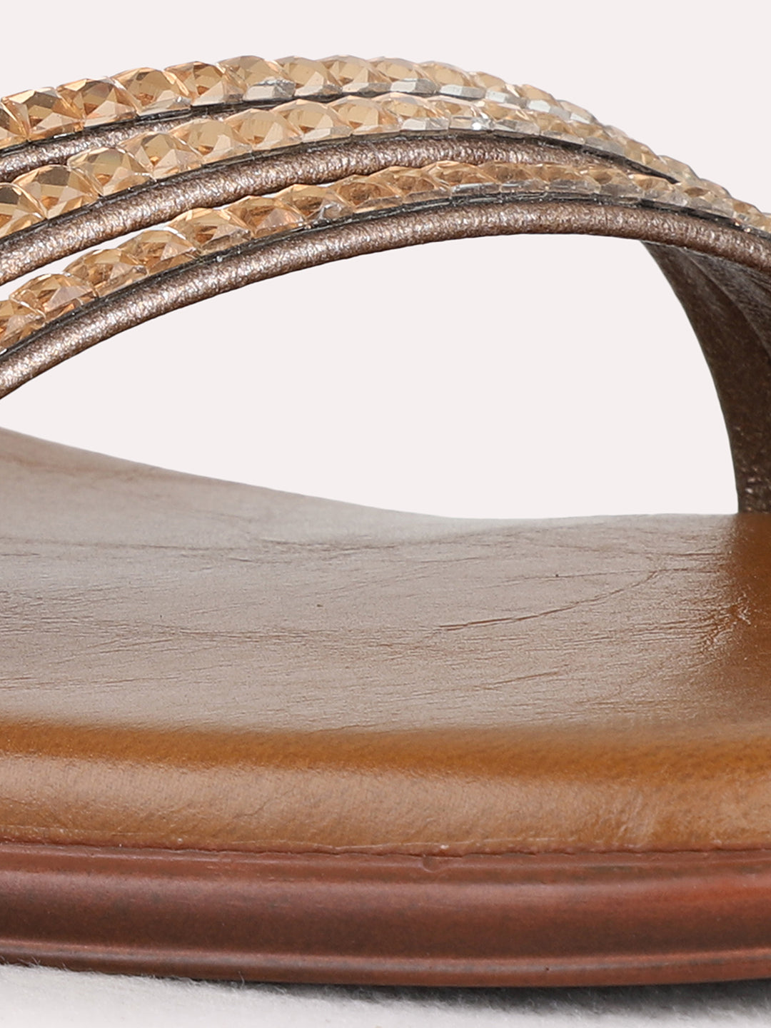 Womens Golden Party Wear Striped Square Toe Block Heel Sandals