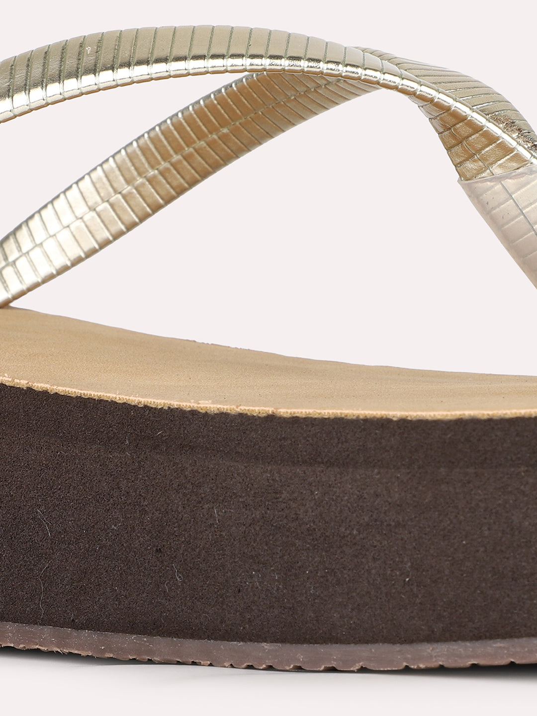 Womens Golden Striped Round Toe Party Wear Wedge Heel Sandals
