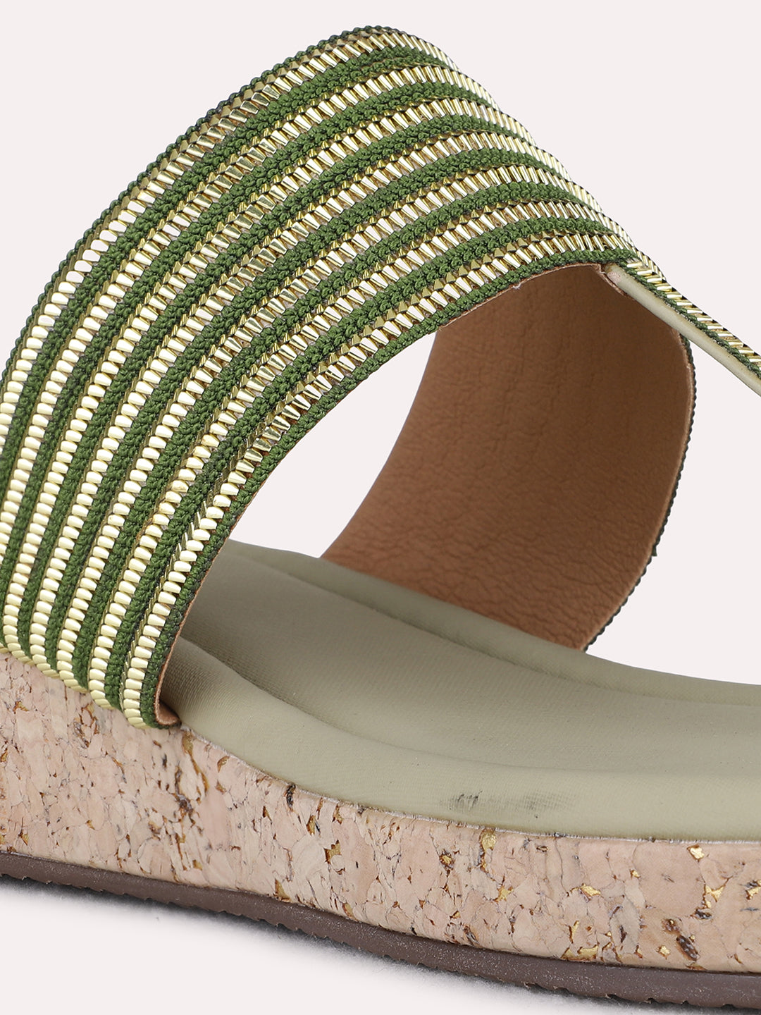 Womens Green Ethnic Embellished Wedge Heel Sandals