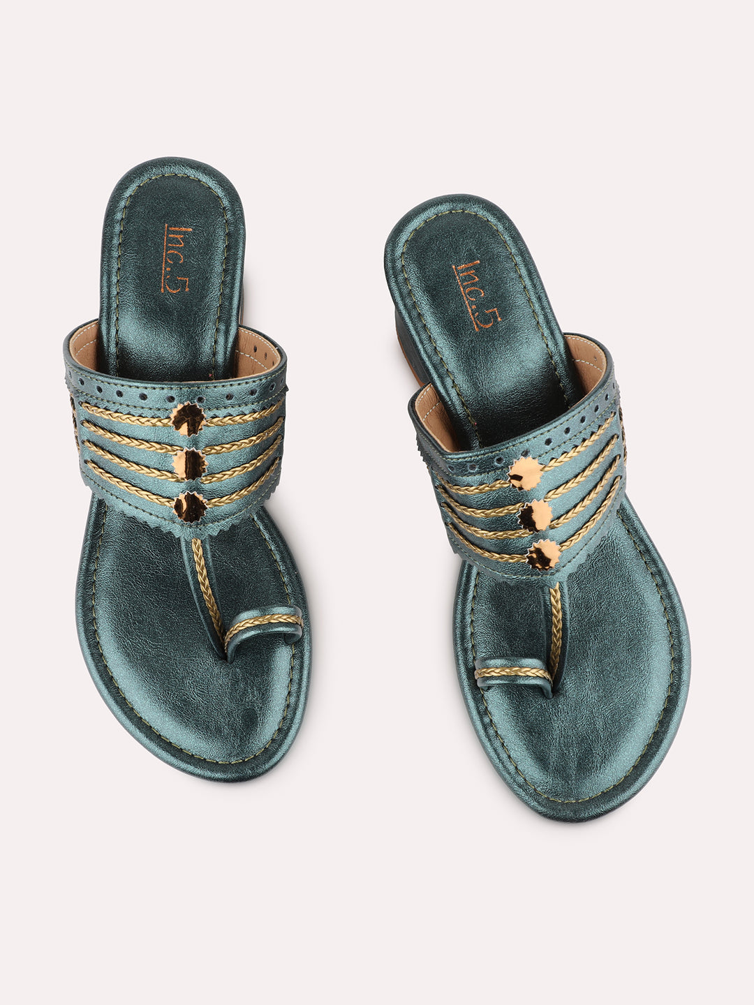 Womens Green Ethnic Wear Embellished Round Toe Block Heel Sandals