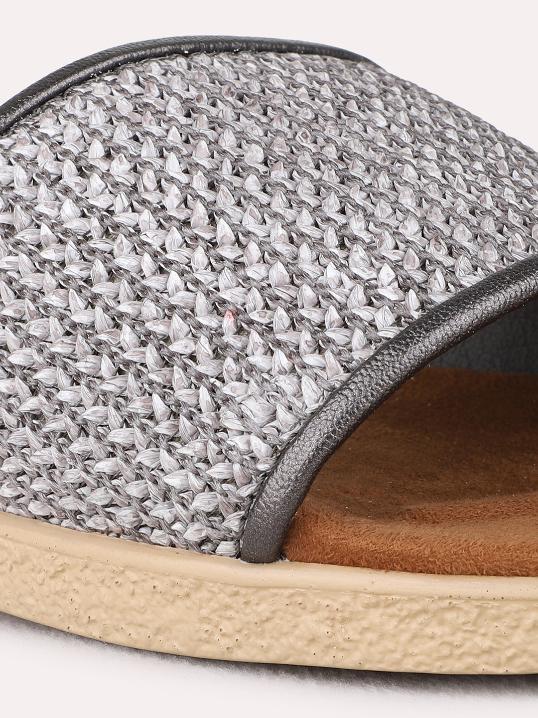Womens Grey Casual Embellished Open Toe Flat Sandals