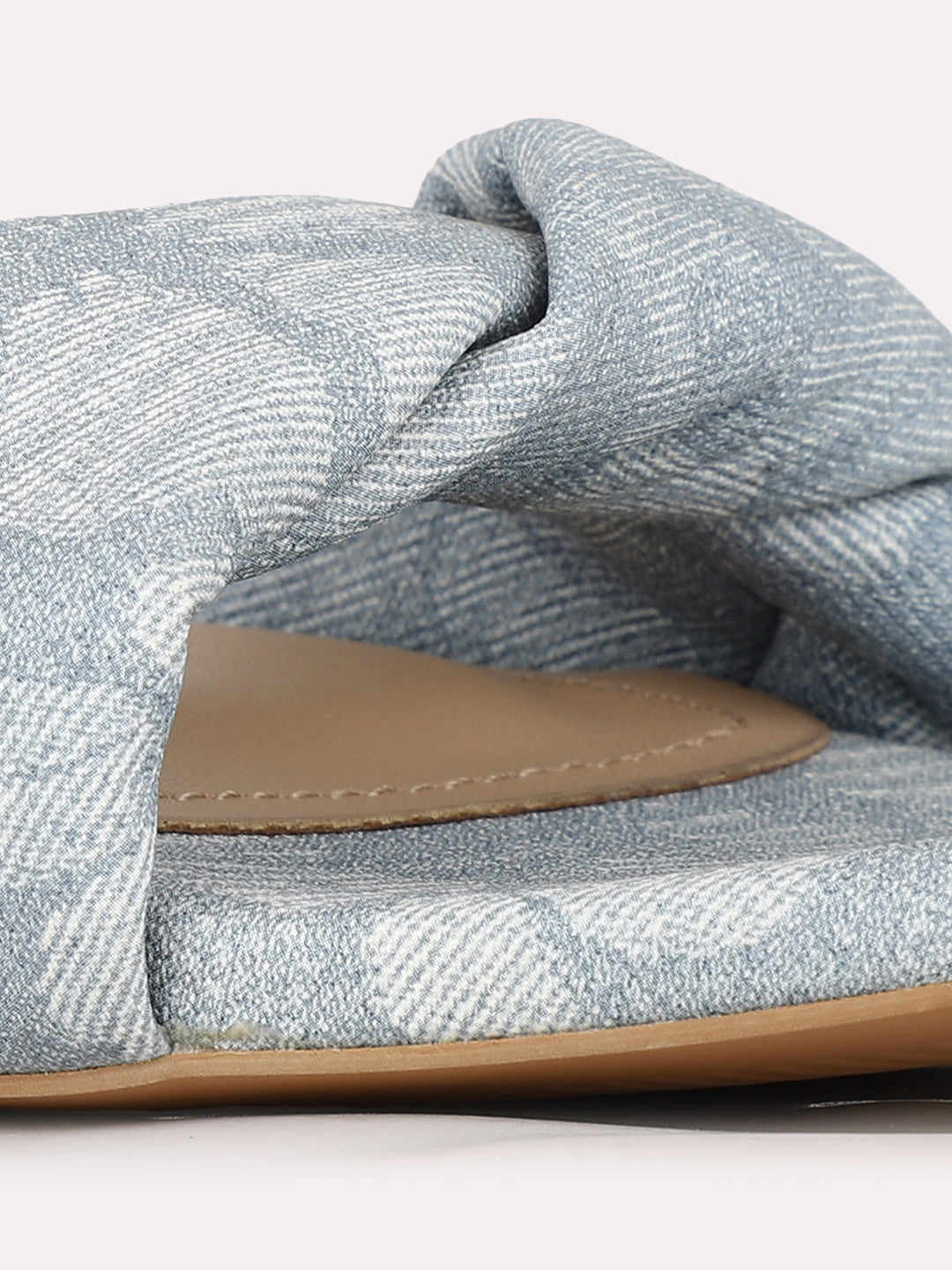Womens Grey Party Wear Printed Toe Square Toe Block Heel Sandals