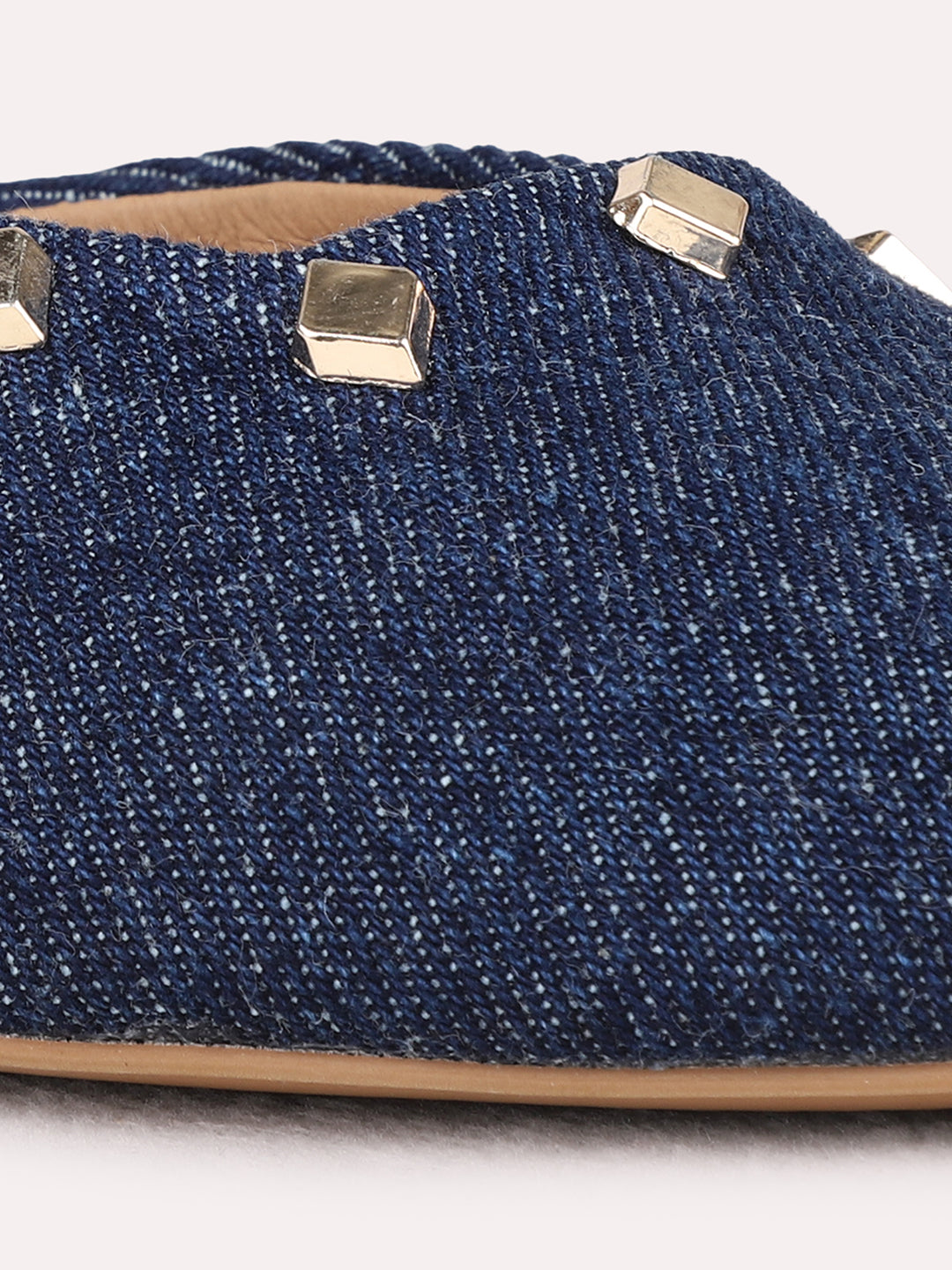 Womens Navy Blue Party Wear Embellished Pointed Toe Kitten Heel Sandals