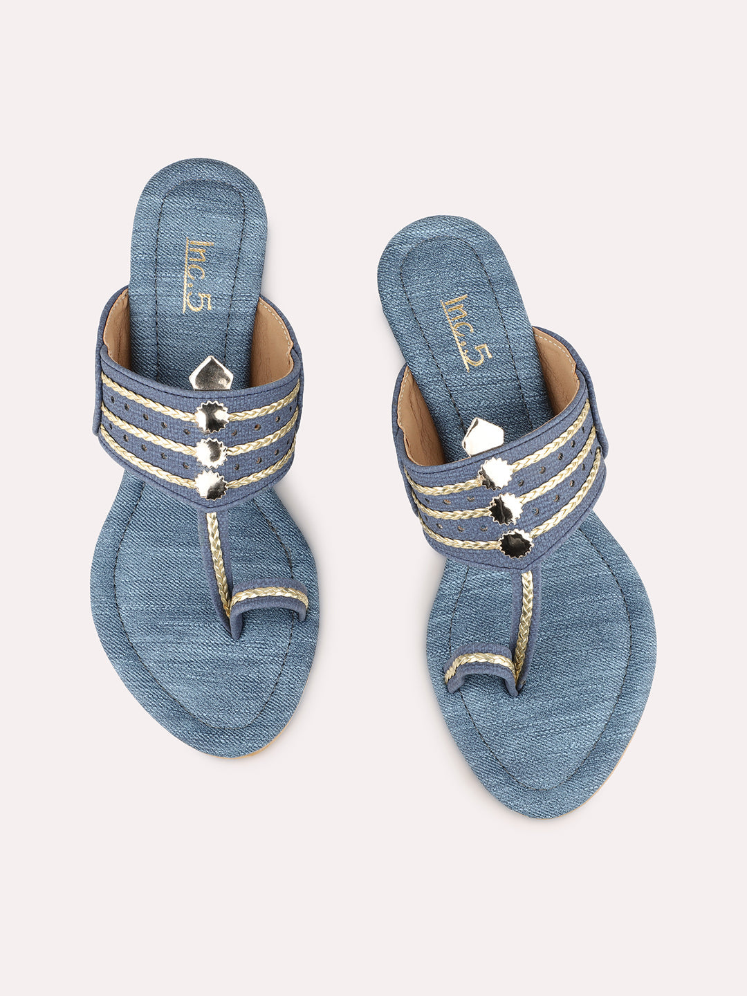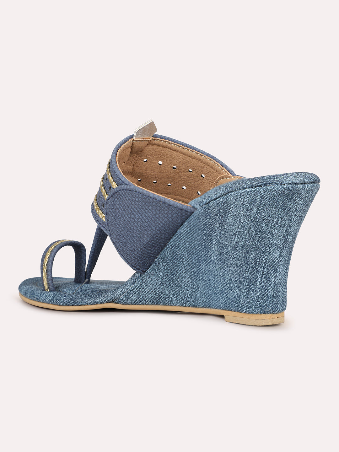 Womens Navy Solid Round Toe Party Wear Wedge Heels Sandals