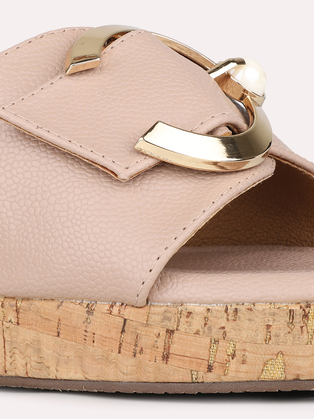 Womens Nude Party Wear Solid Round Toe Wedge Heel Sandals