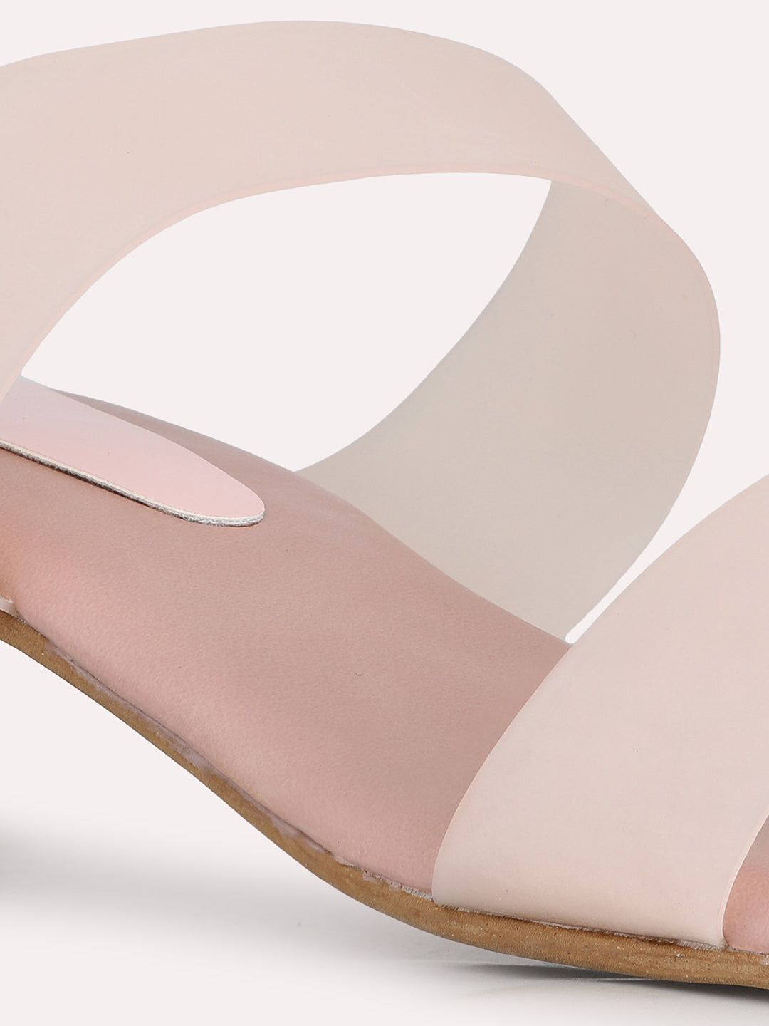 Womens Peach Solid Square Toe Party Wear Heel Mules