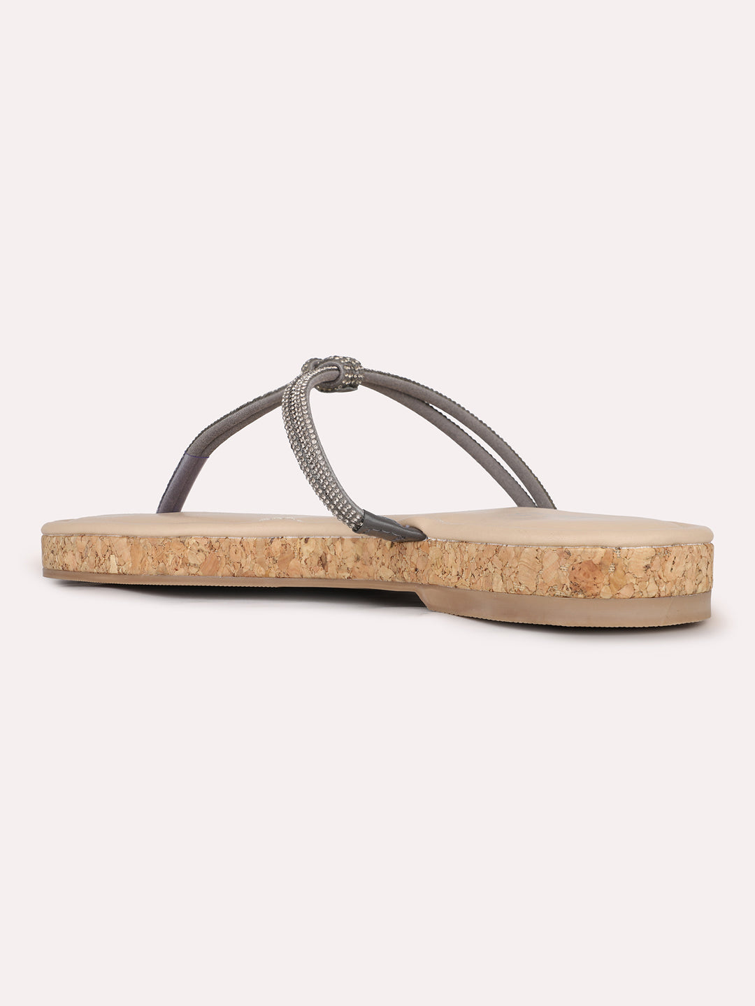 Product description:- Stay effortlessly chic with these pewter T-strap slip-on sandals. Their solid design makes them a versatile pick for casual outings and daily wear. |