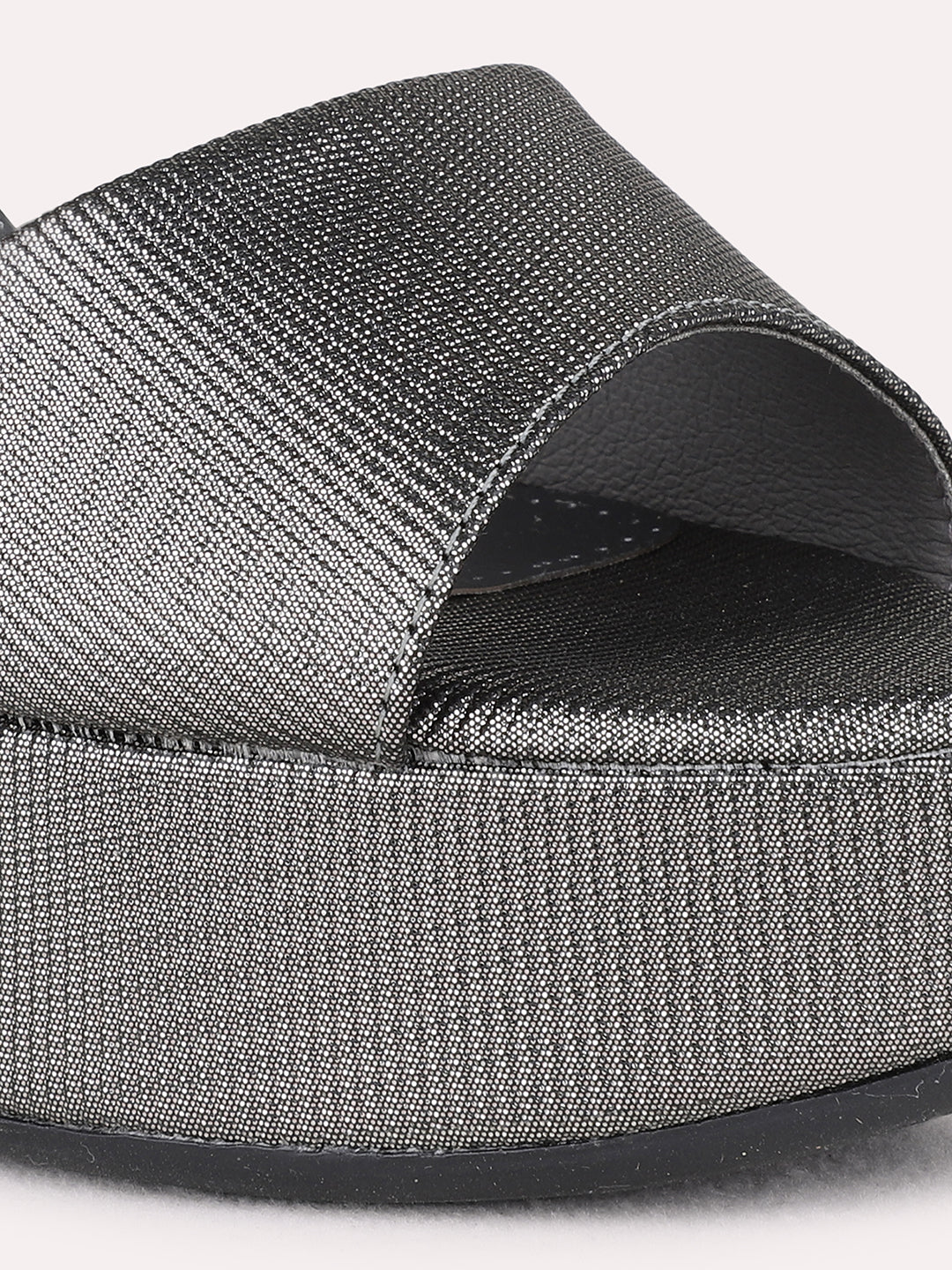 Womens Pewter Party Wear Solid Round Toe Platform Heel Sandals