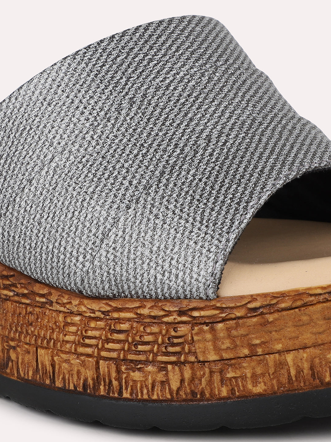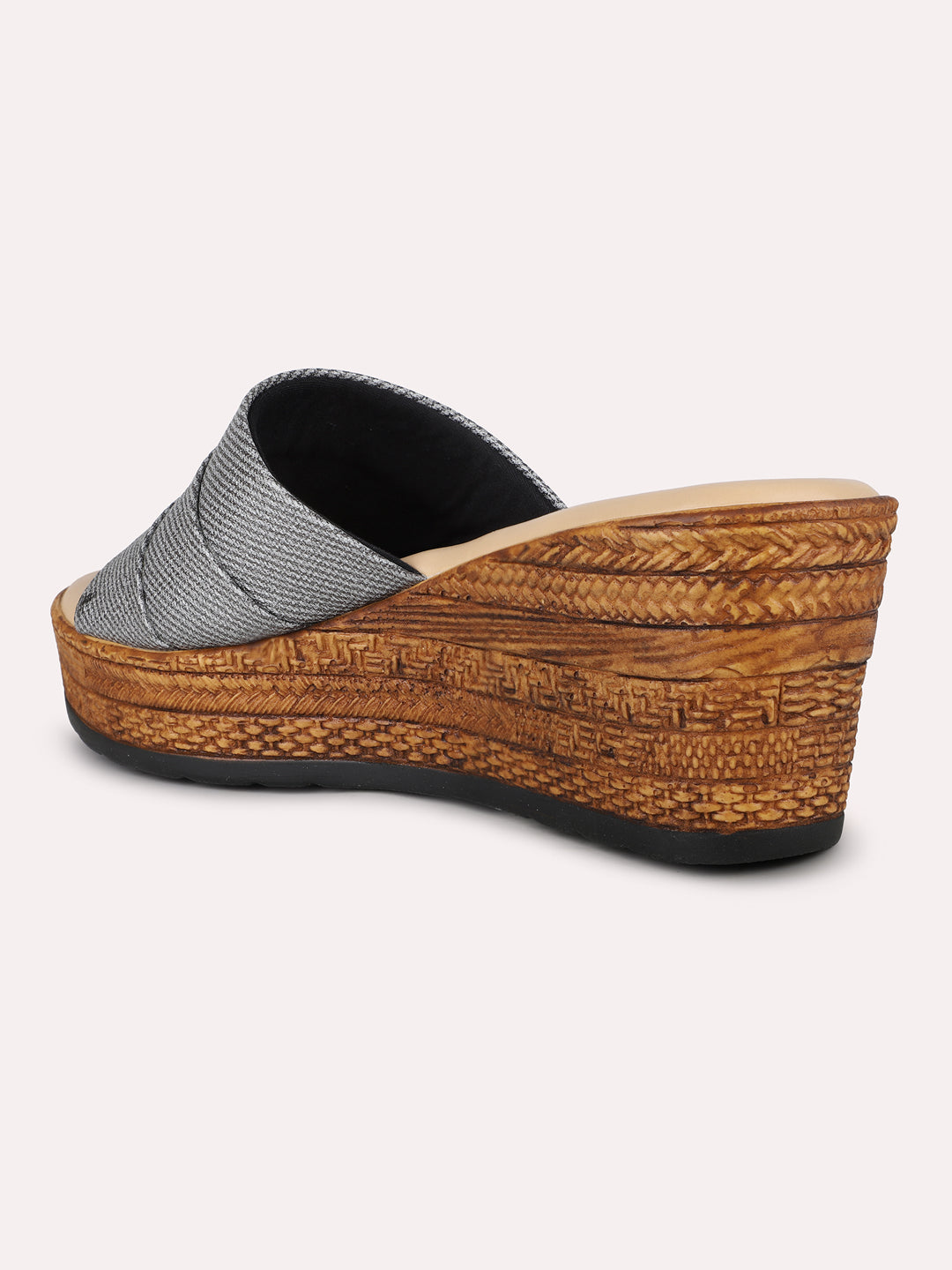 Womens Pewter Party Wear Solid Round Toe Wedge Heel Sandals