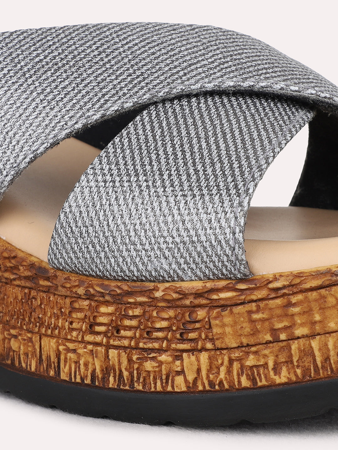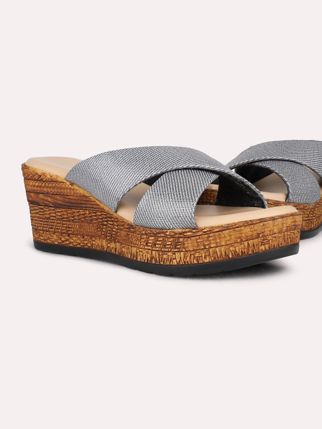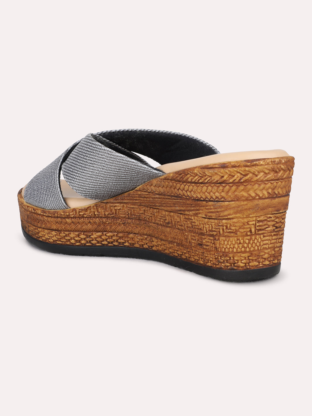 Womens Pewter Party Wear Solid Round Toe Wedge Heel Sandals