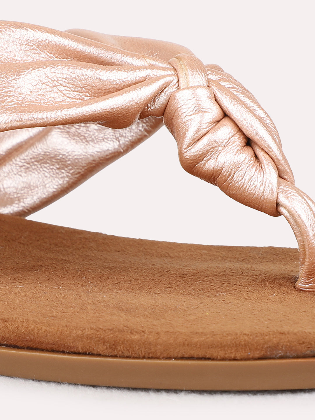 Womens Rose Gold Casual Solid T-Strap Flat Sandals