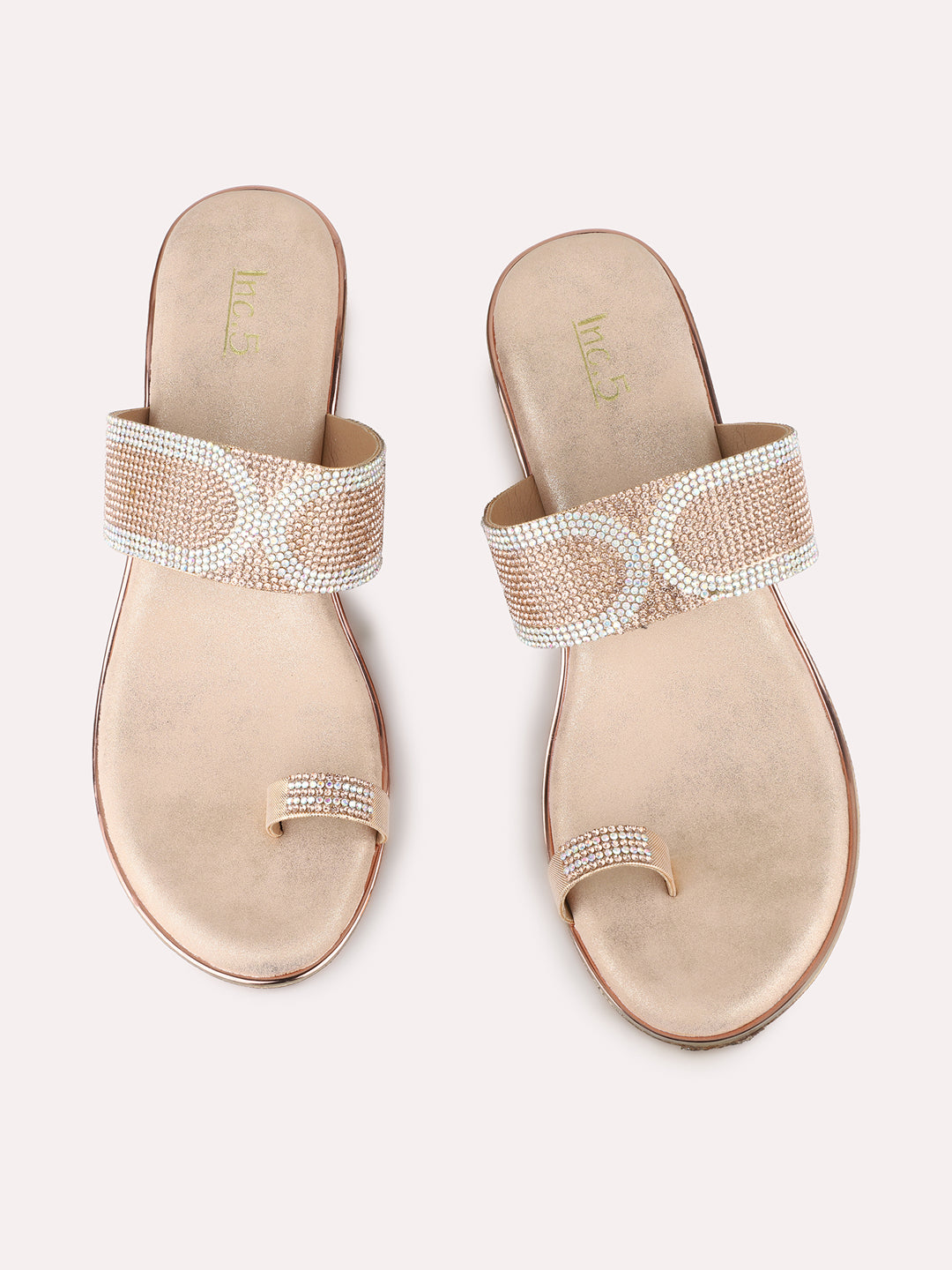 Womens Rose Gold Party Wear Embellished Pattern Wedge Heel Sandals