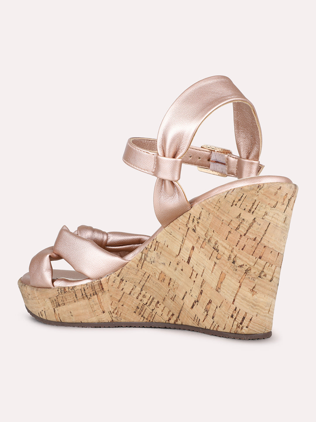 Product description:-Rose gold round toe wedge heels combine shimmer with comfort. Perfect for party wear, festive events, and evening gatherings. |