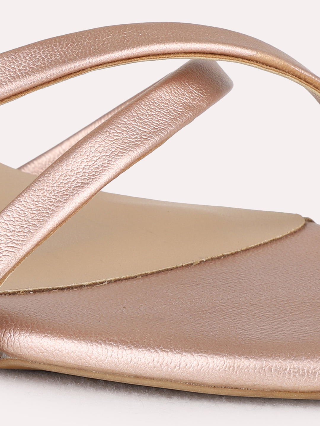 Womens Rose Golden Party Wear Solid Round Toe Kitten Heel Sandals